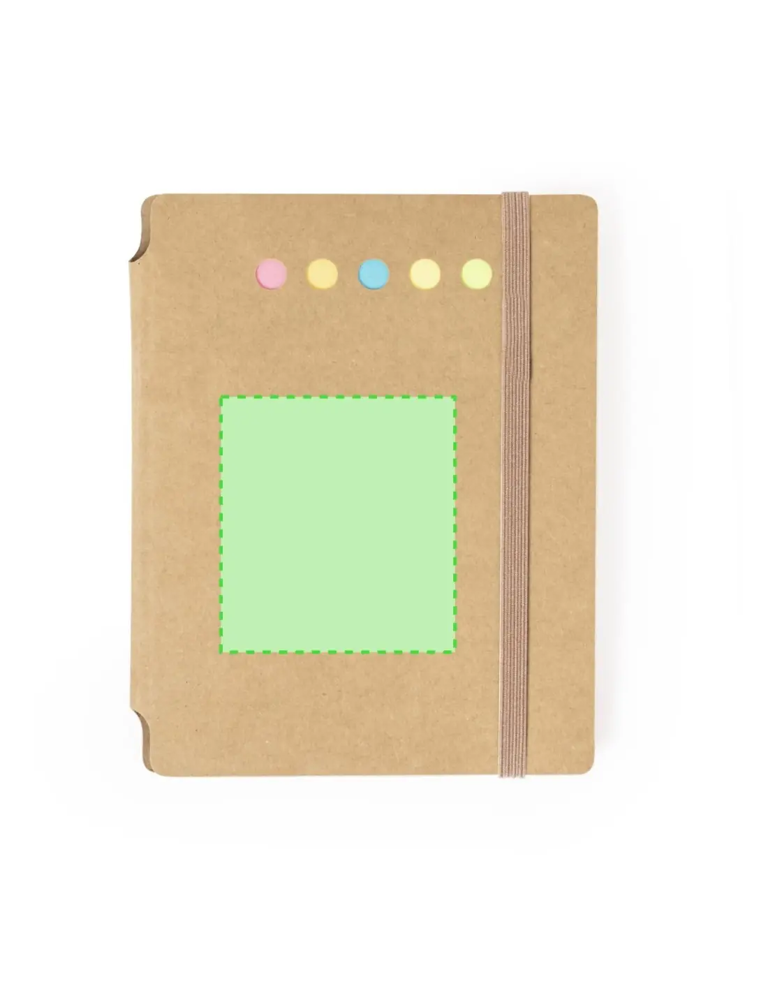 Bloc de notas elaborado en cartón reciclado. Incluye 70 hojas blancas con disposición a una raya, 15 notas adhesivas de 5x6,5 cm y 75 mininotas...