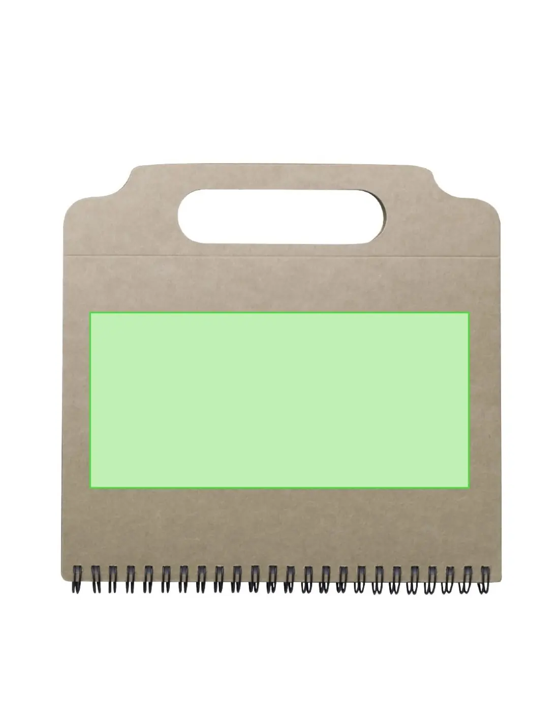 Bloc de notas adhesivas de anillas con bolígrafo de cartón reciclado incluido. De original diseño, con asas de transporte troqueladas y tapas de suave tacto acabadas en resistente cartón reciclado rígido. Con soporte para bolígrafo integrado, incluye bloc de 70 hojas con lineas horizontales, 25 notas adhesivas medianas y 125 mini notas adhesivas.