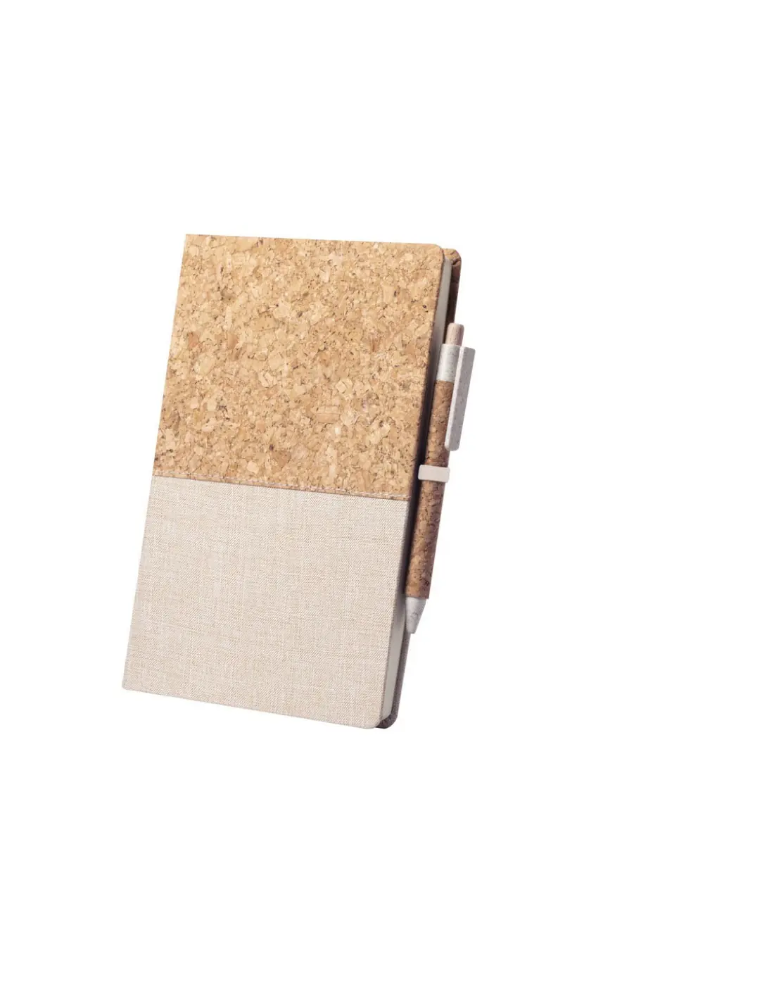 Set de bloc de notas y bolígrafo en línea nature. Incluye bloc de notas con tapas rígidas en corcho natural y algodón, con soporte para bolígrafo y...