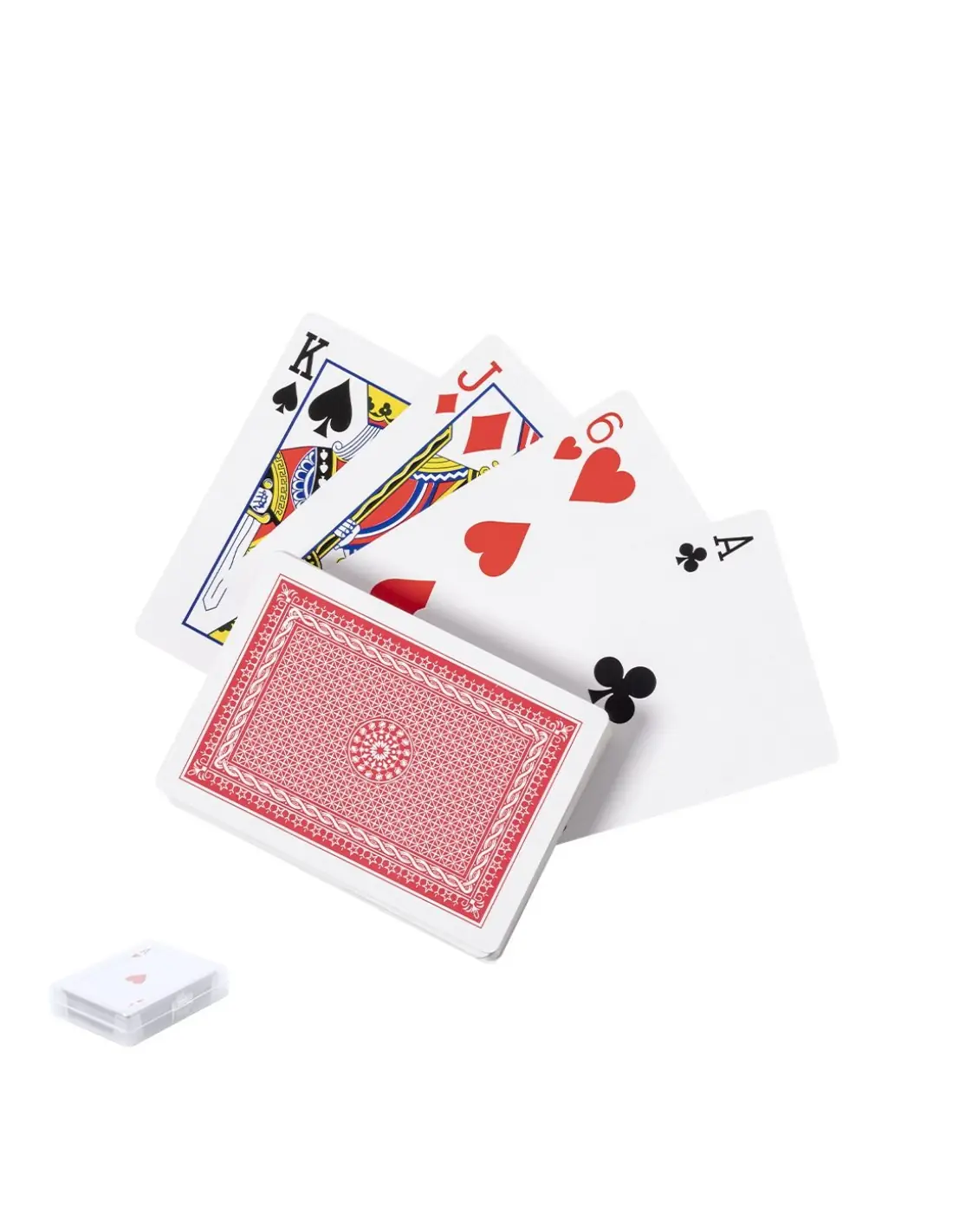 Baraja francesa fabricada en resistente papel laminado. Incluye 54 naipes, presentados en estuche individual de acabado translúcido y con cierre de seguridad.
