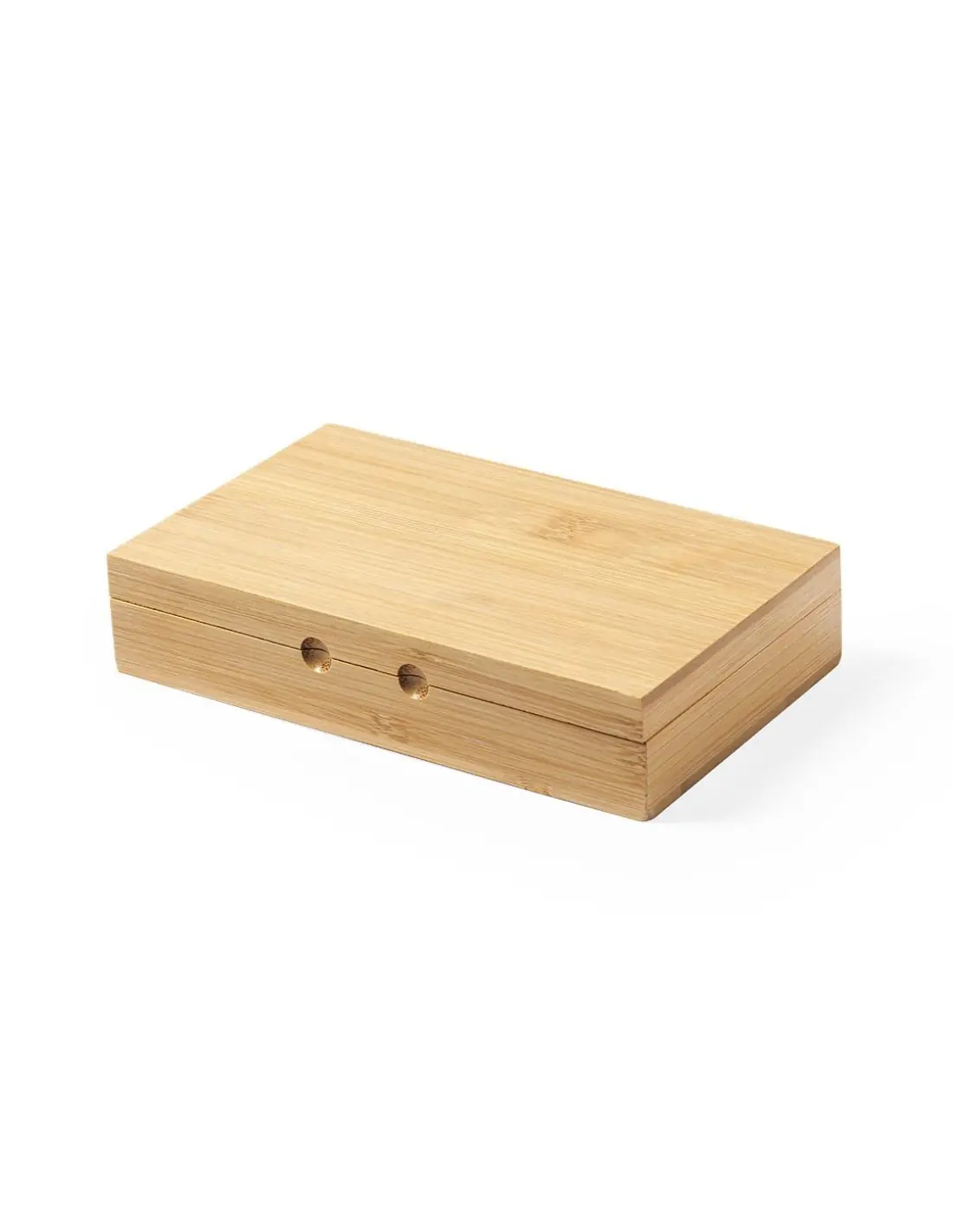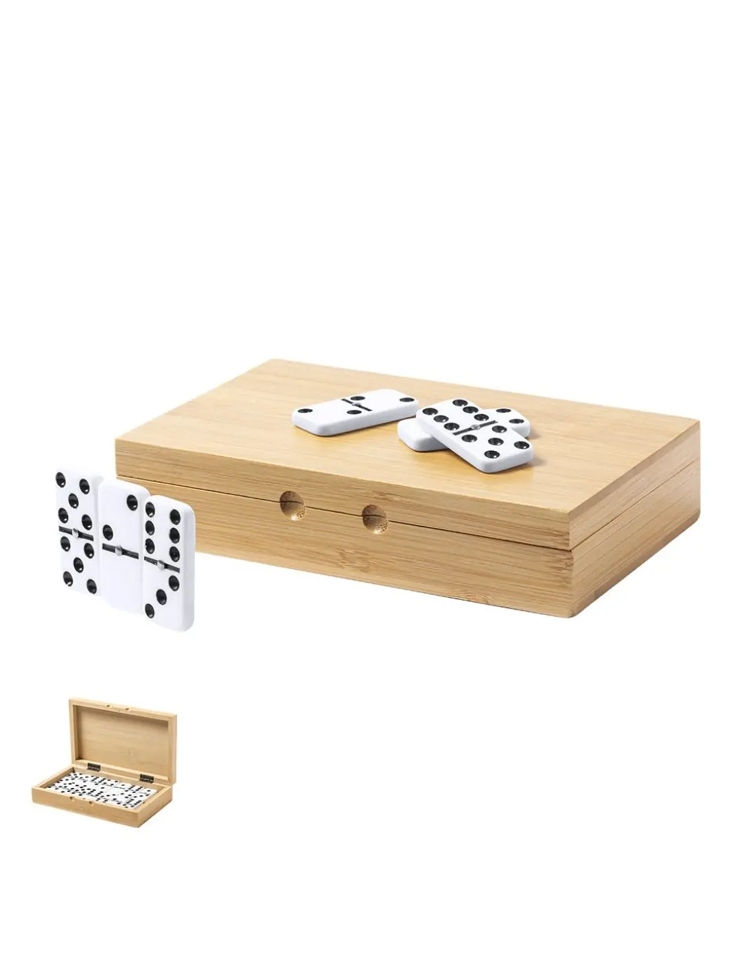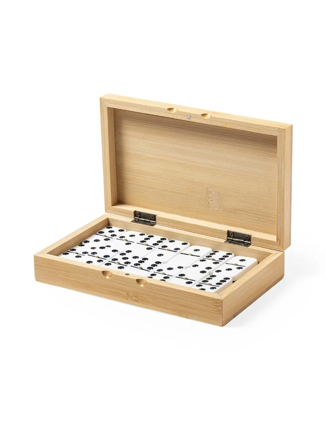 Dominó clásico de 28 piezas fabricadas en resistente melamina. Presentado en estuche individual de bambú lacado, con cierre imantado. Presentado en atractiva caja individual de diseño.