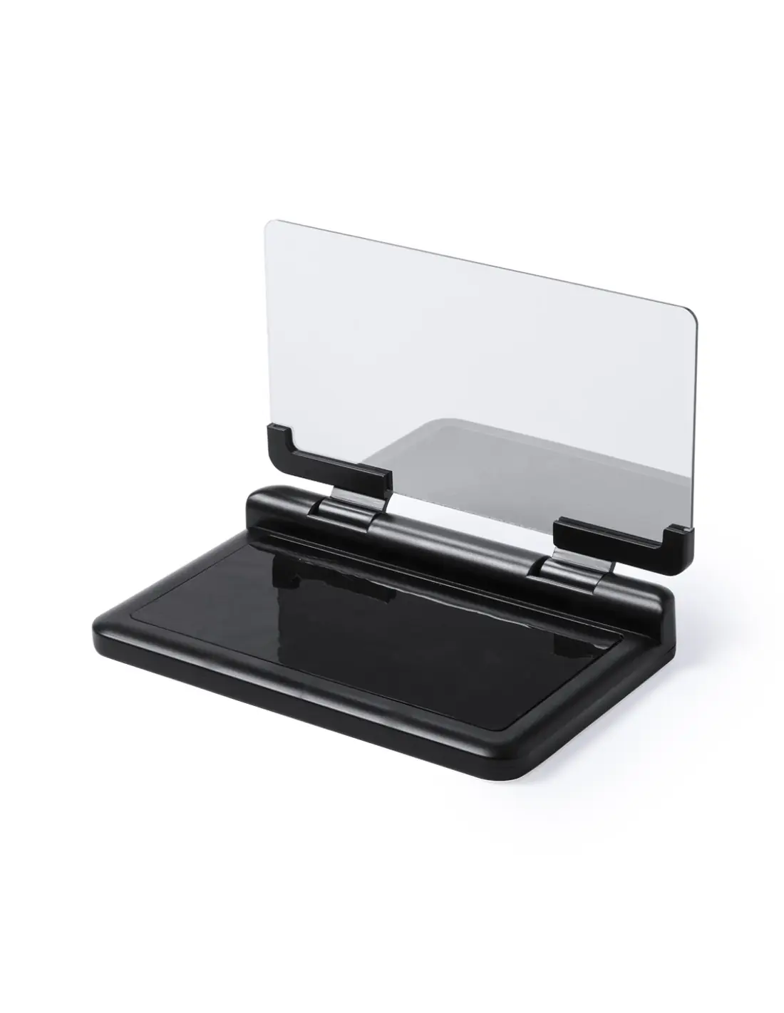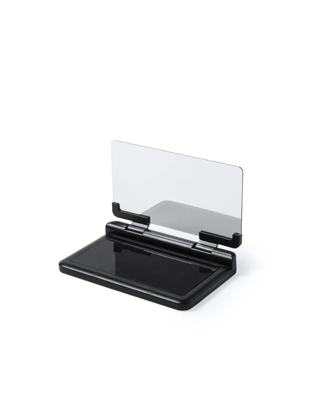 Pantalla soporte para automóvil. Con espejo duplicador de imagen ajustable y superficie anti deslizante ultra adherente para salpicadero y smartphone. Presentado en atractiva caja de diseño.