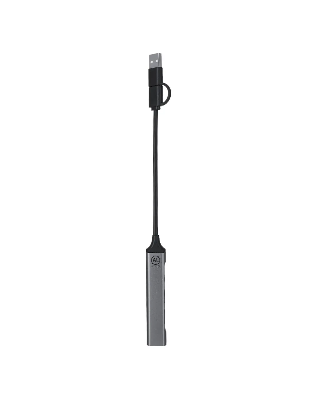 Puerto USB fabricado en Aluminio Reciclado. Con conexión dual USB/Tipo C y 4 puertos: 1 conexión Tipo C 3.0 y 3 puertos USB. Con distintivo Aluminio...