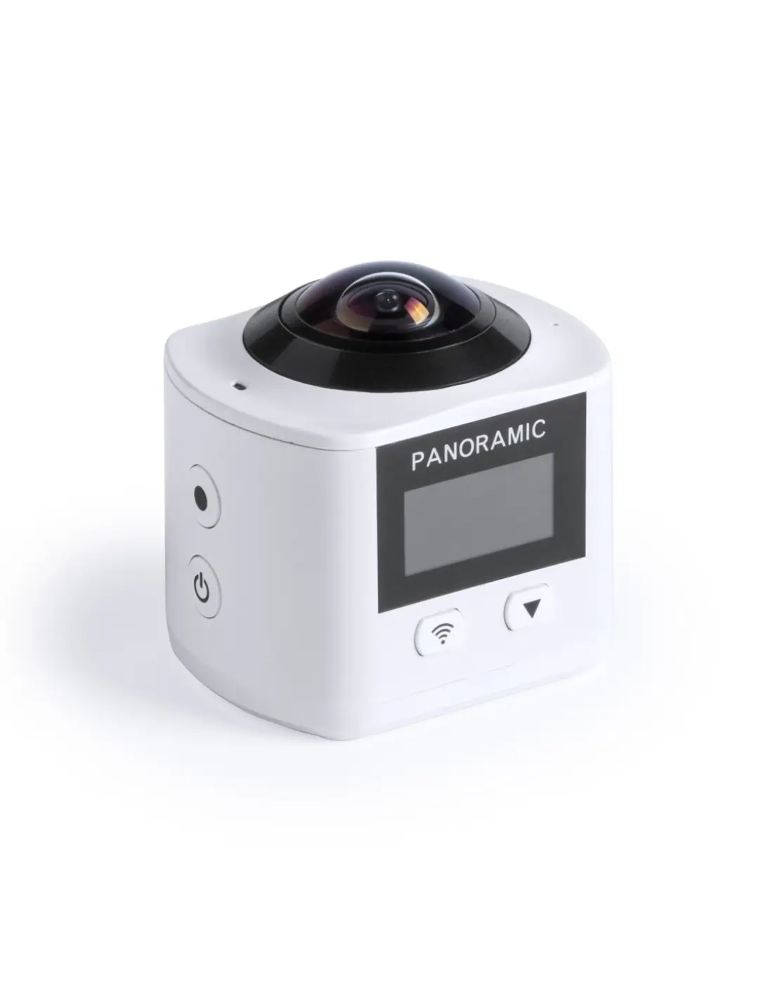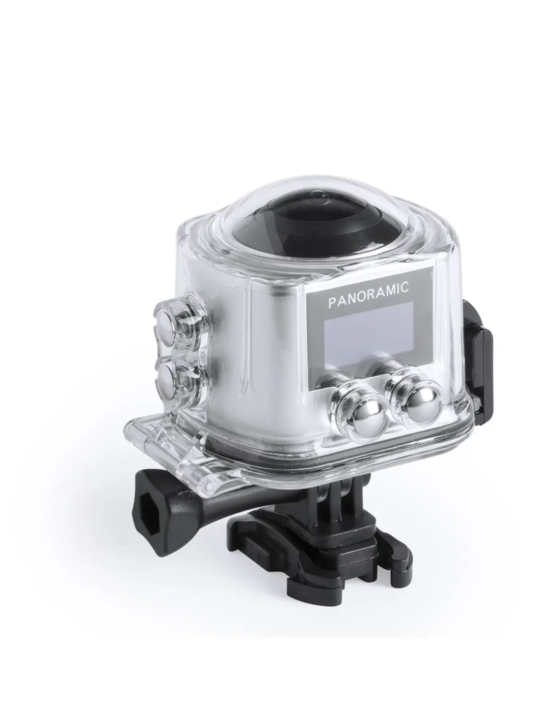 Cámara deportiva 360° de alta calidad de captura de vídeo HD 2448p, de diseño compacto y resistente, especialmente diseñada para uso intensivo. Incluye carcasa sumergible y multitud de accesorios para ajuste en casco, manillar o cinturón, así como correas ajustables para cabeza y torso. La versatilidad y resistencia de esta cámara deportiva la convierten en el gadget perfecto para capturar, con una calidad excepcional, cualquier actividad deportiva o de ocio en 360°. Con función Wi-fi, cámara de fotos Full HD 1080p, ranura para tarjetas micro USB de hasta 64 GB de capacidad, pantalla LCD de 0,96 pulgadas, sistema multilenguaje, y recargable mediante cable mini USB -incluido-. Presentada en atractiva caja de diseño.