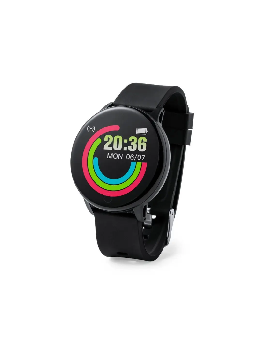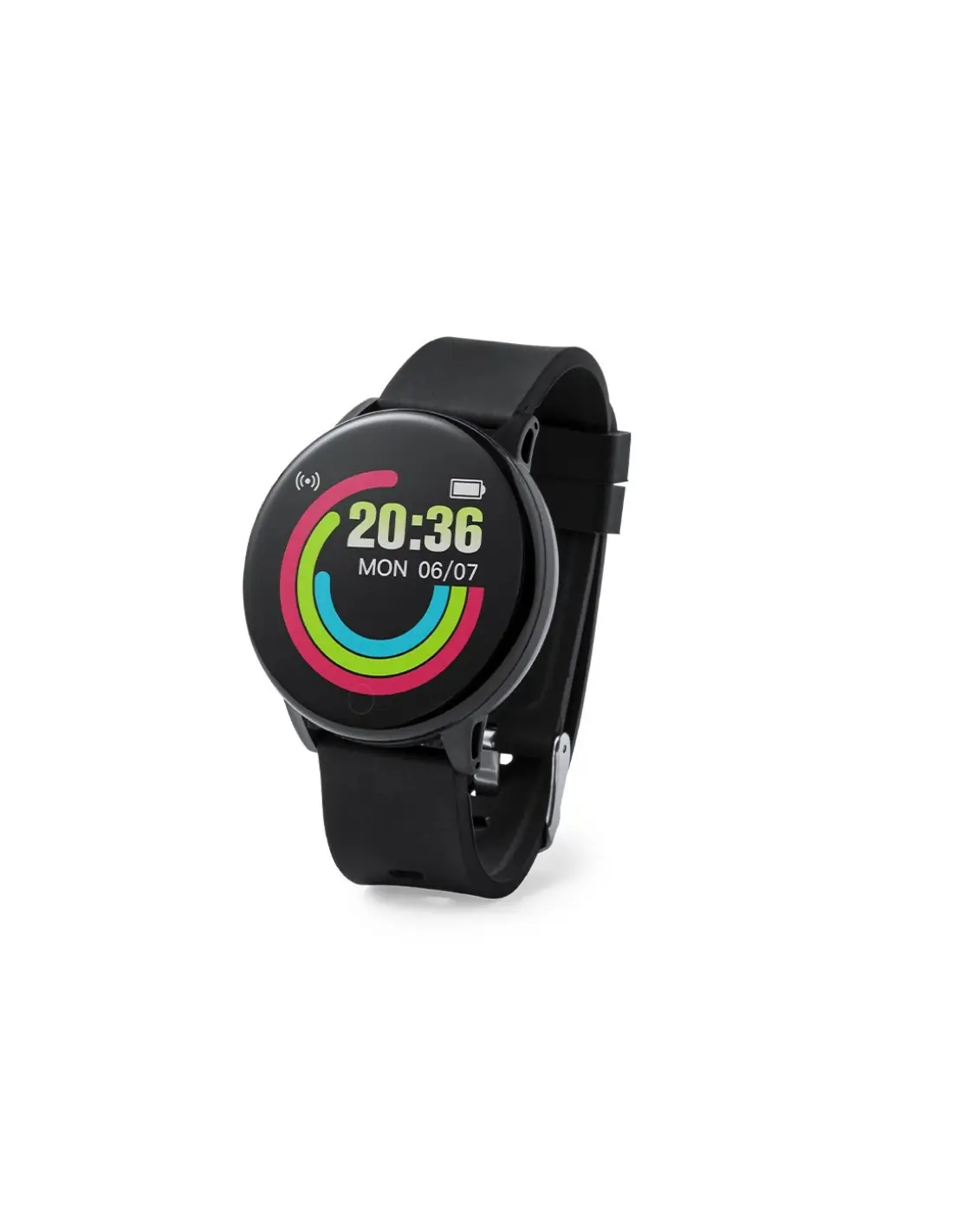 Reloj inteligente multifunción de diseño casual, con conexión Bluetooth. Caja de diseño circular y correa en TPU a juego. Pantalla TFT táctil de 1,30 pulgadas y batería de 180 mAh, que lo convierten en el gadget perfecto para todo tipo de actividades deportivas, de ocio y para el día a día. Multitud de funciones disponibles, interfaz multilenguaje y resistente a salpicaduras de agua, con APP disponible para iOS y Android. Presentado en caja individual de diseño, con manual de instrucciones en español e inglés.