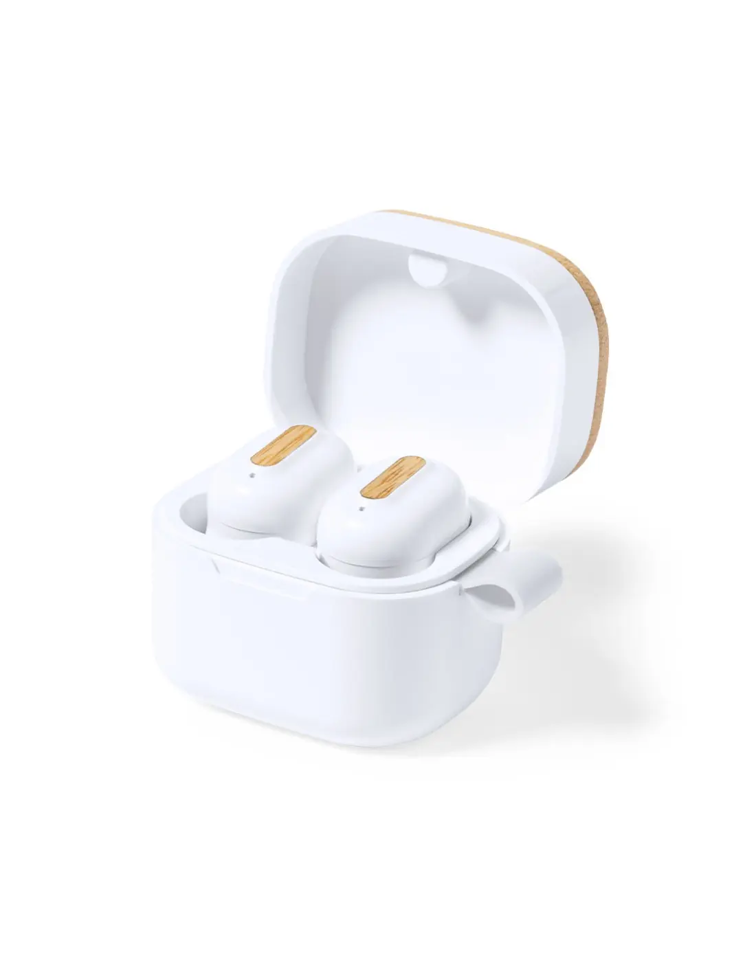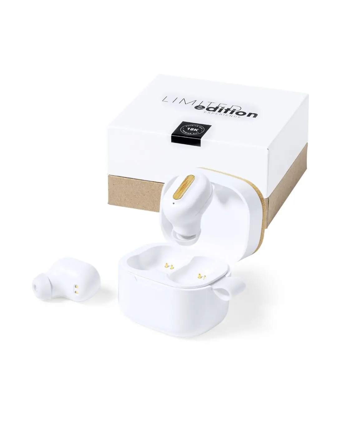 Auriculares inalámbricos Limited Edition. Un rompedor diseño que conjuga diseño, funcionalidad, y sostenibilidad. En elegante acabado de color blanco en combinación con detalles en bambú natural y presentados en estuche cargador blanco con distinguida tapa de bambú. De diseño ergonómico, incluyen botón de control táctil integrado en el auricular, con base de carga a juego y luz LED indicadora de carga. Con conexión Bluetooth 5.0. Función manos libres y recargables con cable USB C incluido. Manual de instrucciones en Español e Inglés incluido. De la perfecta combinación entre exclusividad y diseño, nace Limited Edition, una colección especial de ideas promocionales de edidición limitada. Un nuevo concepto, inspirado en la fusión de artículos premium con las últimas y más novedosas tendencias y que cuenta con una seleción limitada de unidades, convirtiendo así un regalo en una experiencia única e inolvidable. Exclusivo estuche de presentación Limited Edition, con diseño protegido por derechos de propiedad industrial. Incluida tarjeta con descripción de Limited Edition en cartón reciclado.