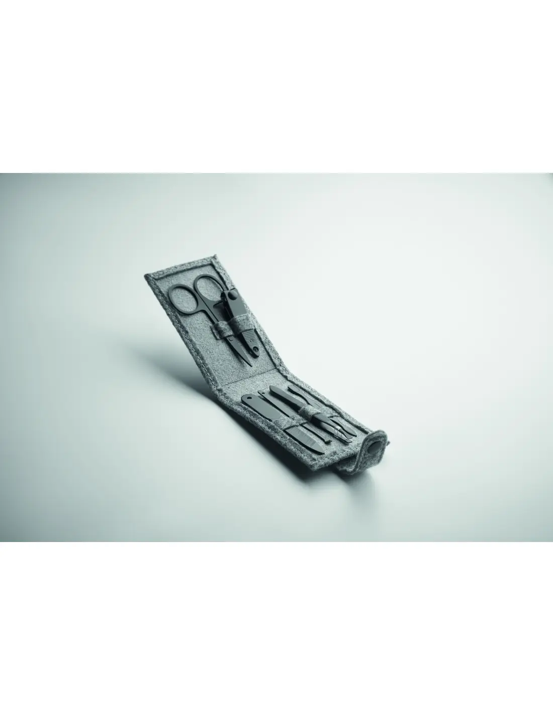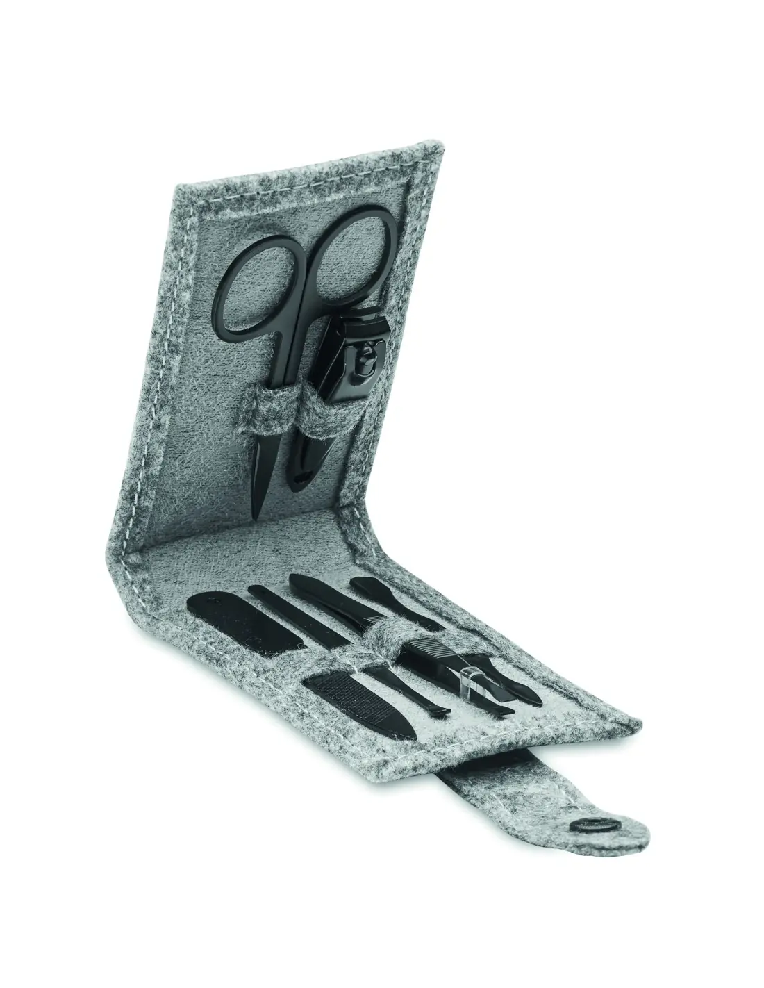 Set de manicura de 6 piezas de acero inoxidable en estuche rectangular de fieltro RPET.
