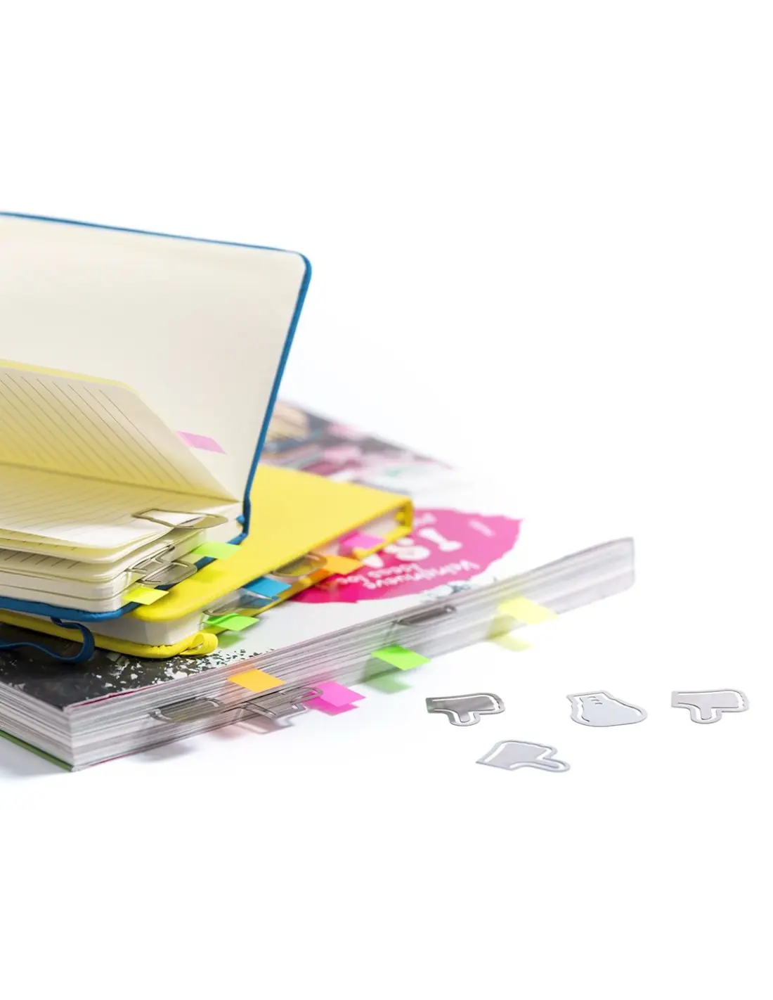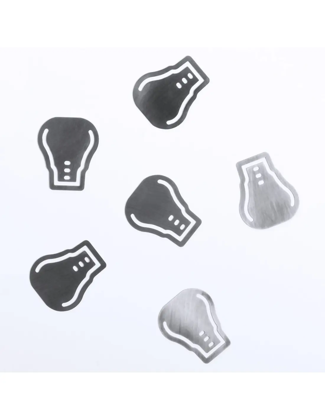 Set de 20 clips en diseño de bombilla. Presentados en estuche individual de PVC translúcido con cierre magnético e interior troquelado en suave espuma.