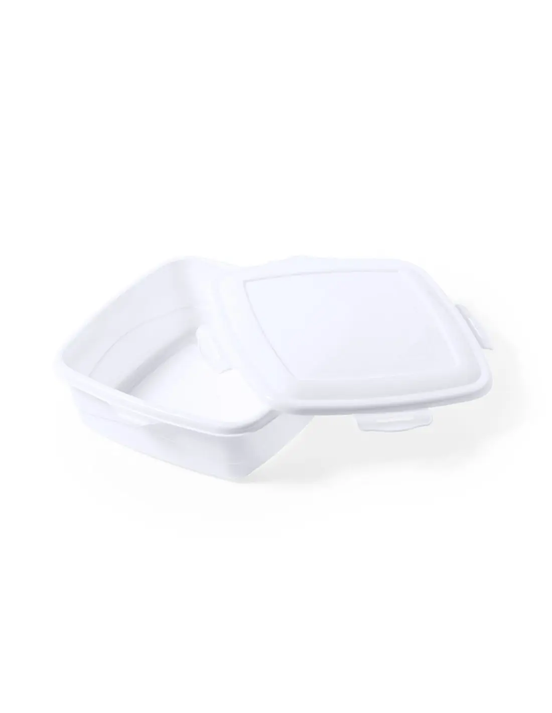 Fiambrera de 1L de capacidad, hecha en PP de color blanco. De fabricación europea y con certificación Food Grade, garantizando la seguridad cuando los alimentos entran en contacto con el material usado para fabricar el producto. Formato cuadrado, con cierre de seguridad en todos sus lados.