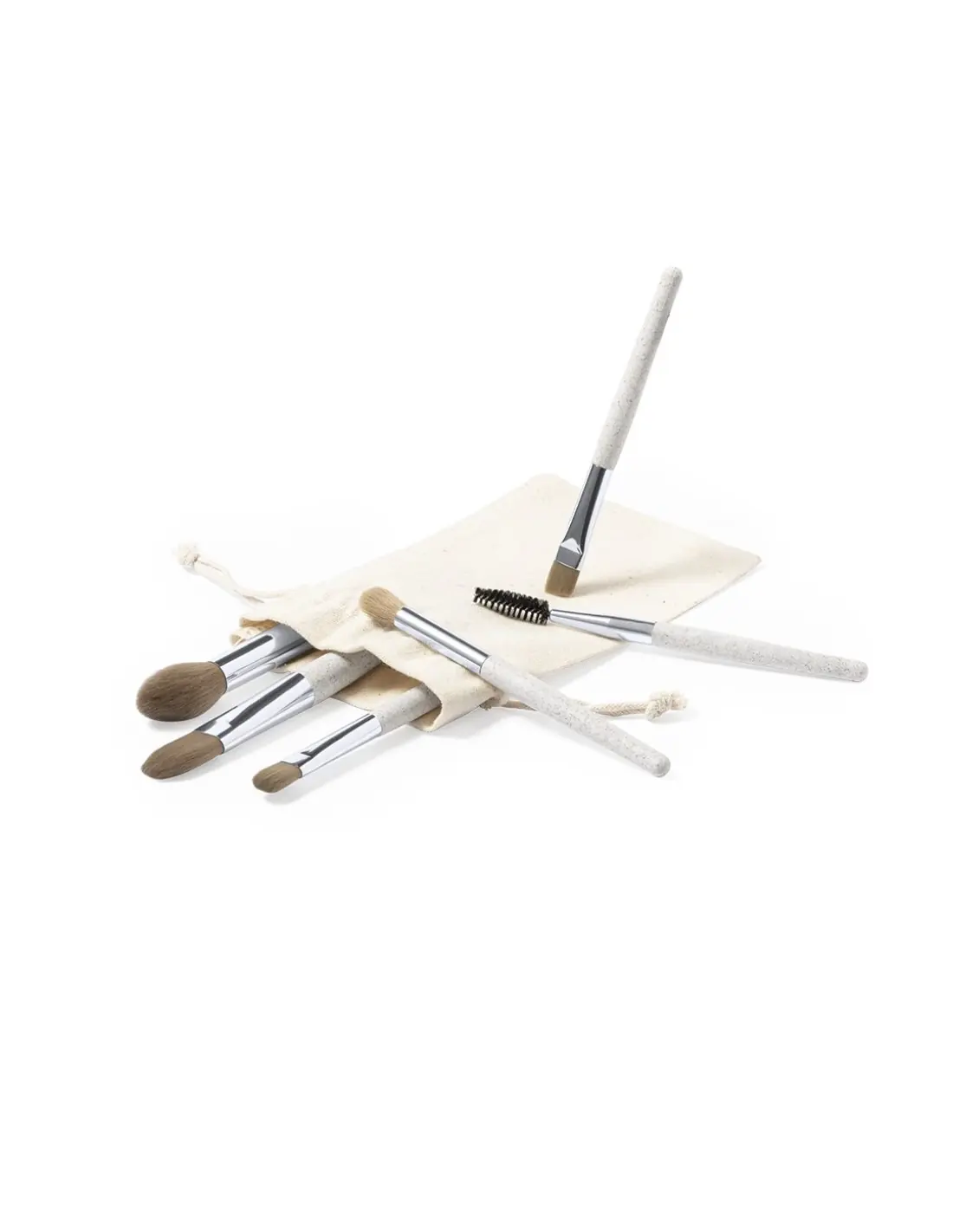Set de brochas de maquillaje, con 6 brochas para diferentes usos incluidas. Fabricadas en caña de trigo, para así fomentar la utilización de materias primas naturales y reducir las emisiones contaminantes. Set presentado en funda de algodón 100%, con cordón de cierre.