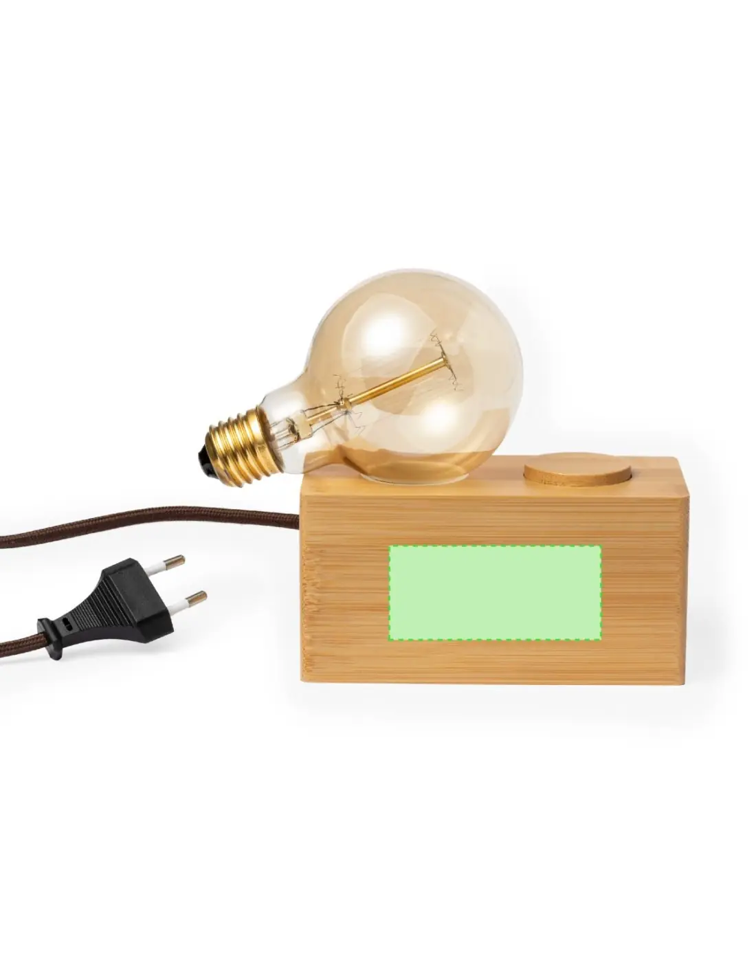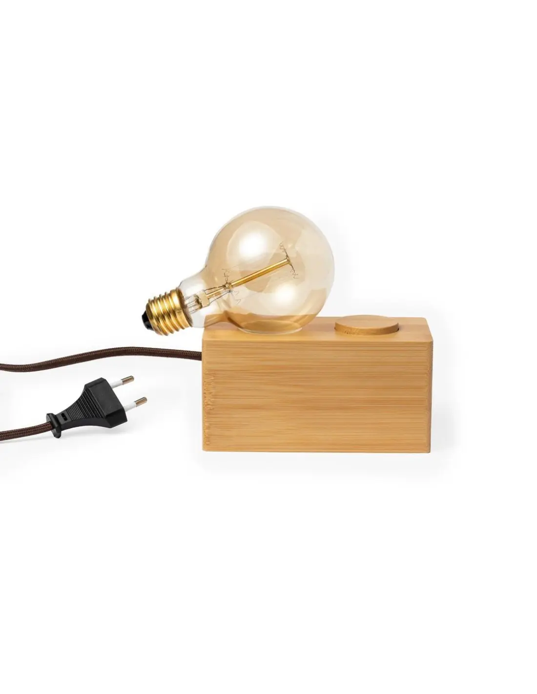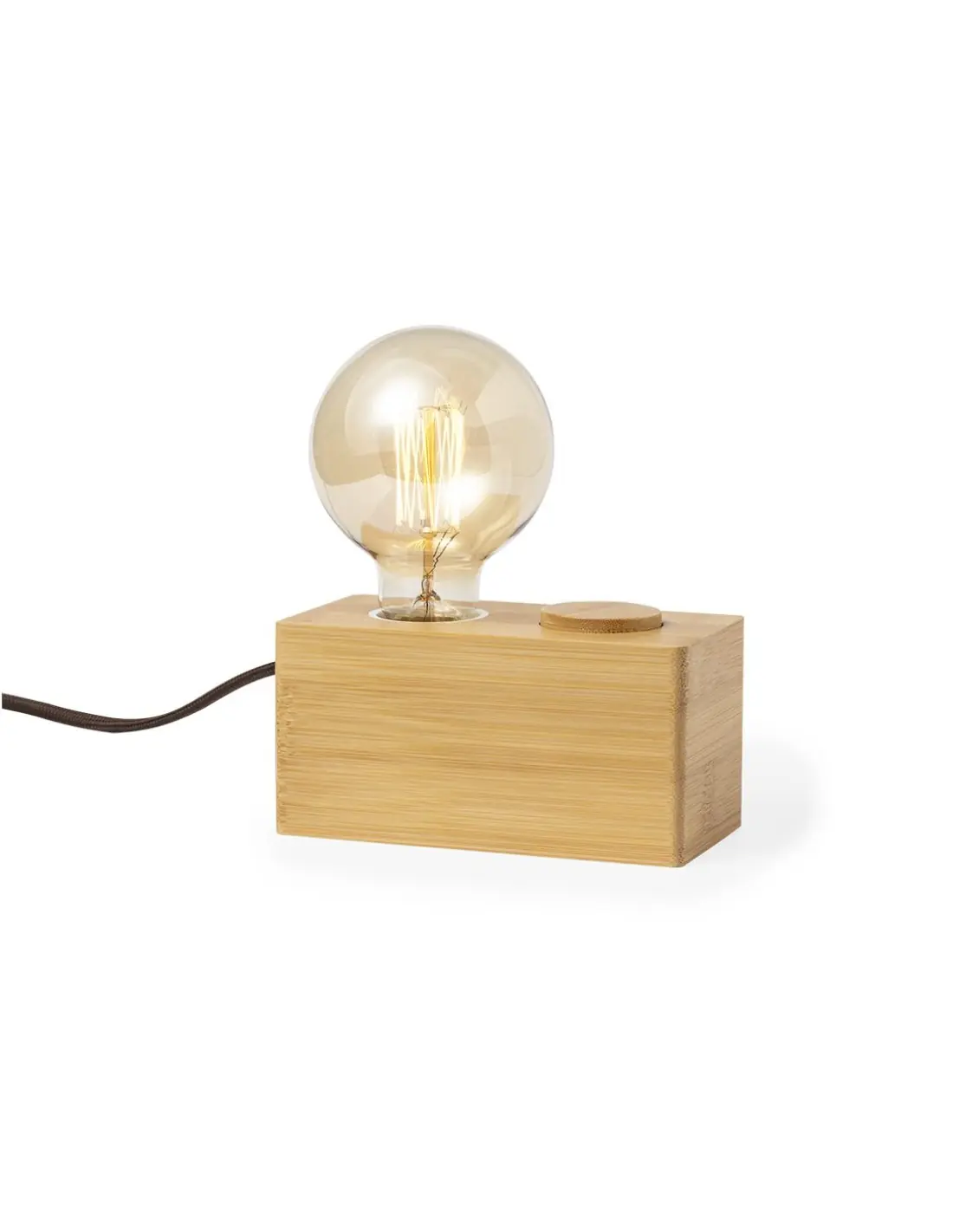 Lámpara de original diseño vintage fabricada en bambú. Bombilla incandescente G80 de 40W, con intensidad de luz regulable y funcionamiento a 220-240V (tipo de enchufe UE). Con base de bambú antideslizante y presentada en caja individual de diseño kraft.