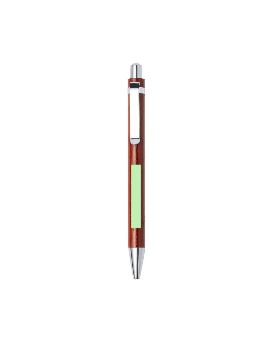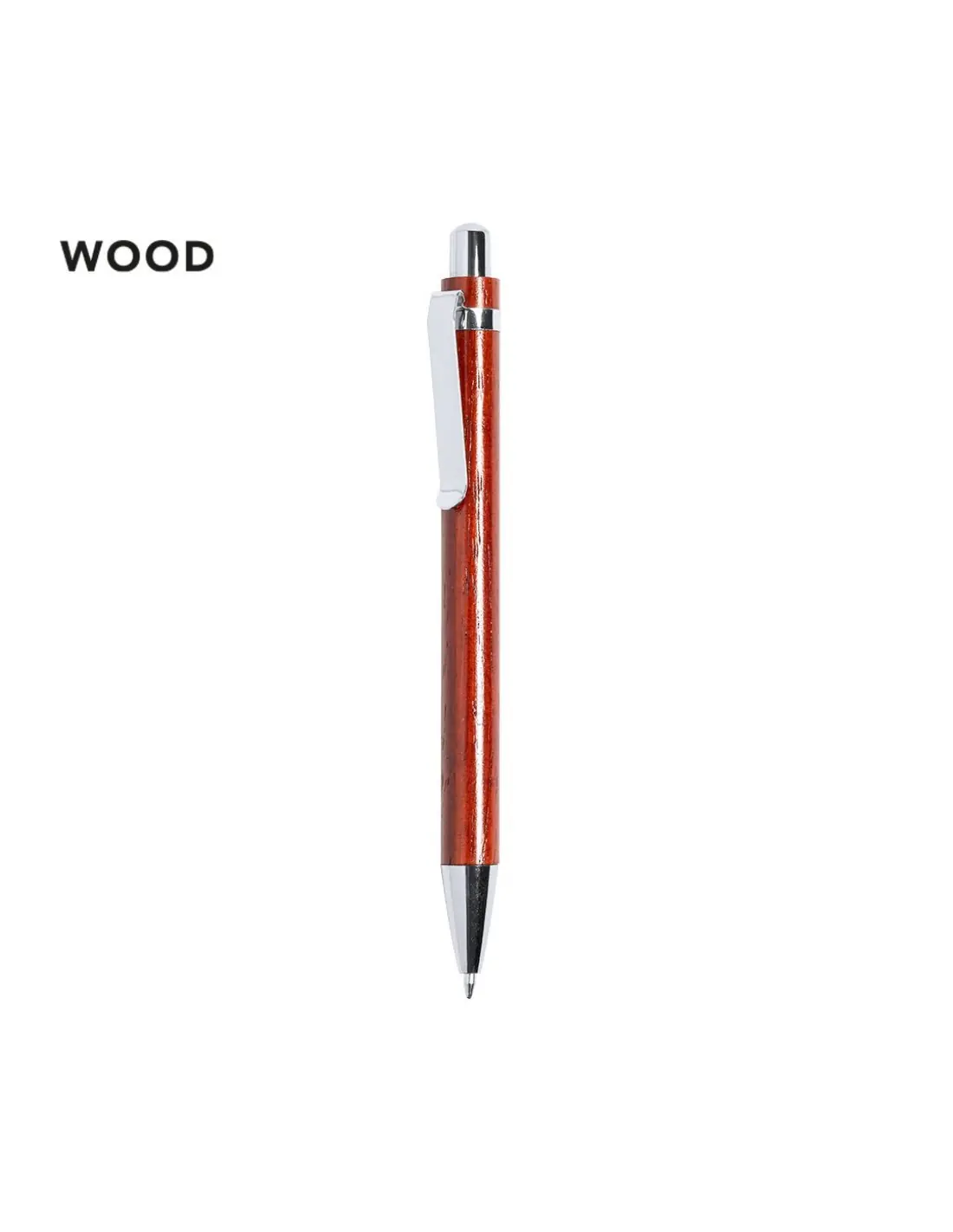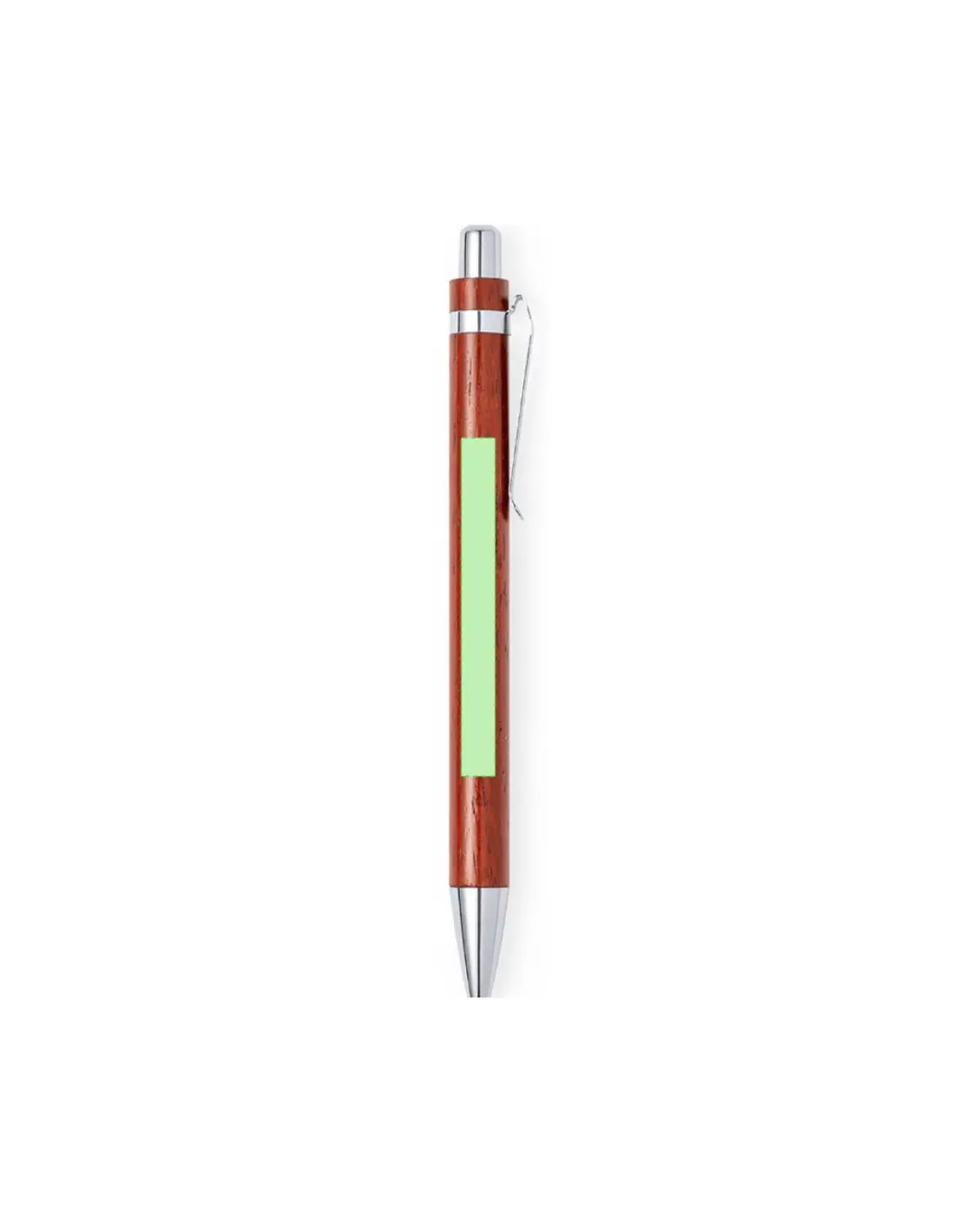Bolígrafo de línea nature, con cuerpo fabricado madera natural. De mecanismo pulsador y accesorios en cromado, con amplio clip metálico para grabado en láser. De cartucho jumbo y en tinta azul.