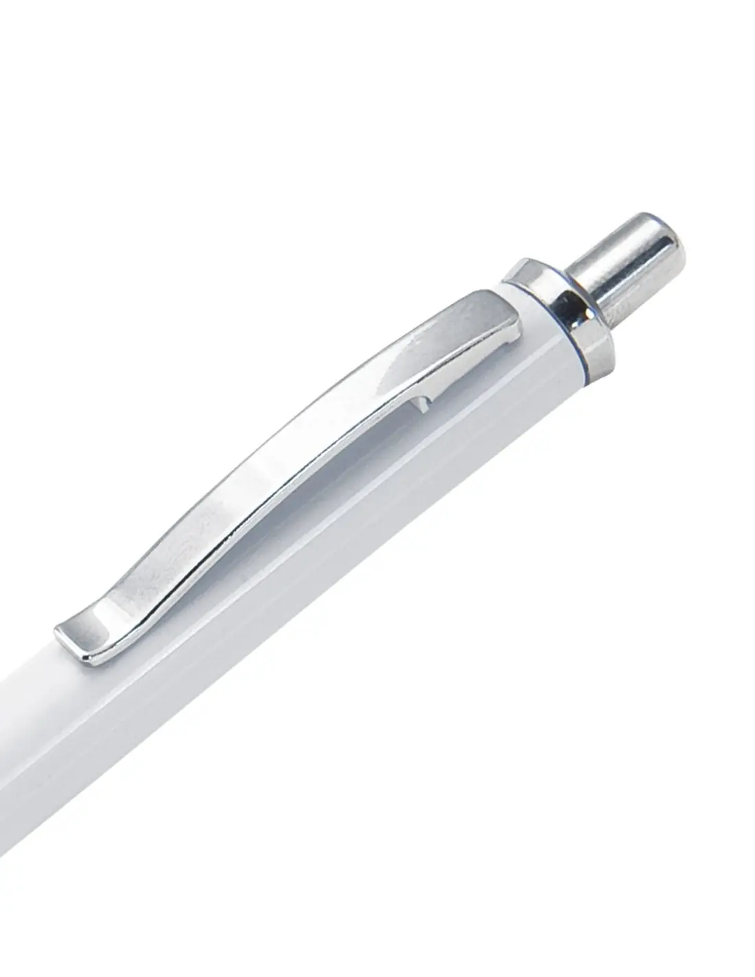 Bolígrafo de mecanismo pulsador de elegante diseño bicolor con accesorios en color plateado brillante y cuerpo de suave acabado en color blanco...