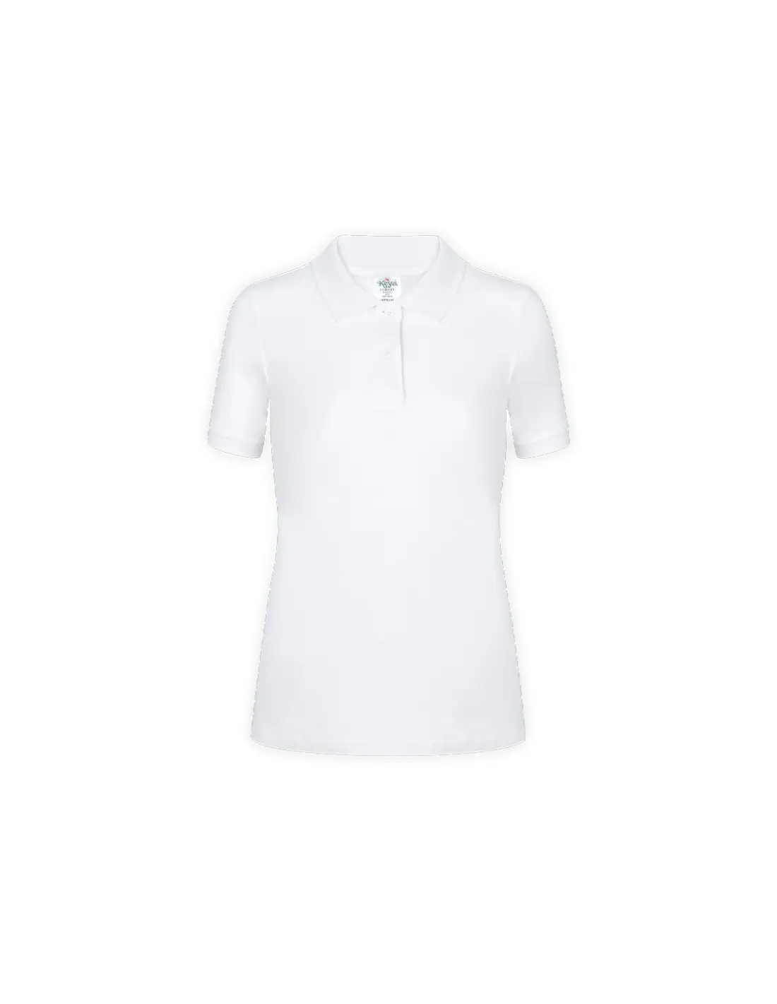 Polo de piqué para mujer de Keya WPS180. En material 100% algodón de 180g/m2. Con dos botones de cierre a juego y disponible en color blanco. Tallas S, M, L, XL, XXL.