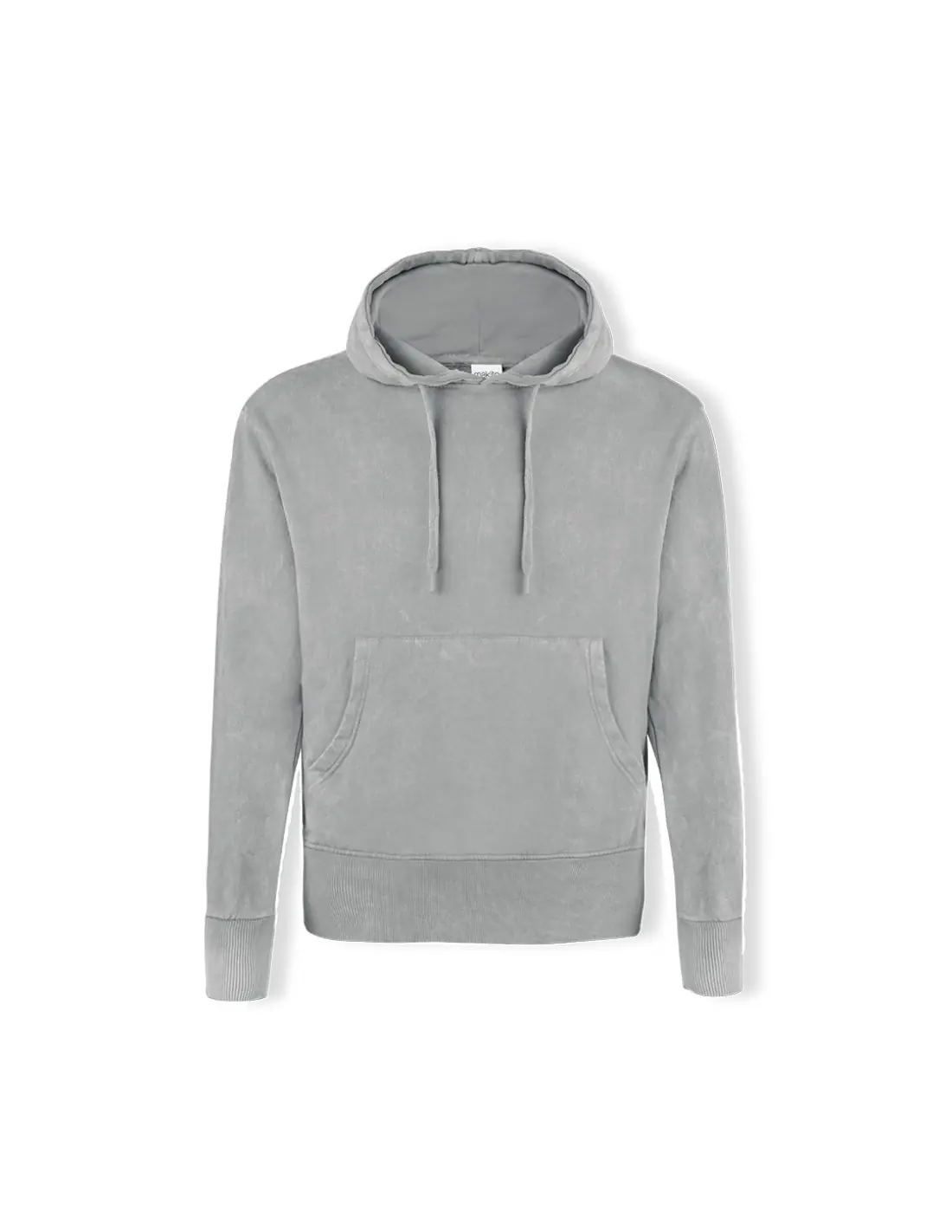 Sudadera unisex con capucha y tejido con efecto lavado jeans lo que hace que cada pieza sea única e irrepetible. Bolsillo canguro y elásticos de ancho extra para un ajuste perfecto. Detalle en contraste en elástico de puños y bajo. Confeccionado en 100% algodón peinado con un gramaje de 280g/m2. Tacto suave y corte moderno. Cordones ajustables planos y ojetes de confección, evitando así el uso de metal. Dobles costuras para una mayor durabilidad y resistencia al uso intensivo. Etiqueta fácilmente removible. Disponible en tallas XS, S, M, L, XL y XXL.