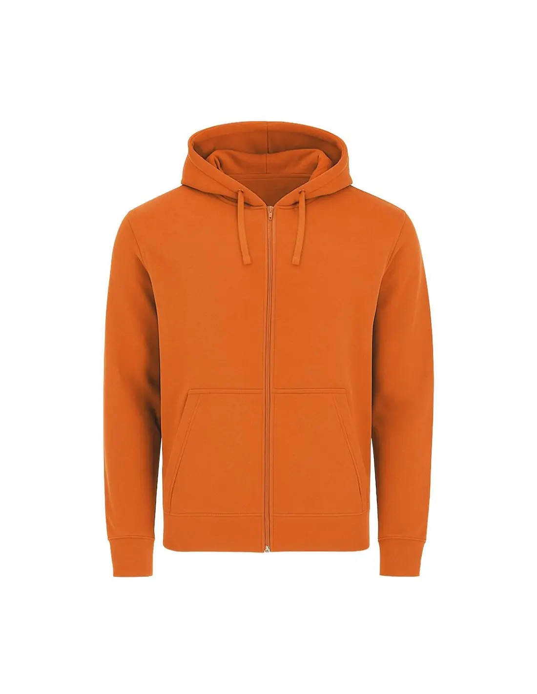 Sudadera unisex con capucha forrada a tono de doble tejido. Confeccionada en algodón y poliester en suave felpa perchada de 280 g/m2. Cierre frontal de cremallera completa a tono. Con cordón ajustable y ojales metálicos a juego. Bolsillo tipo canguro. Cubrecosturas en el cuello. Puños y la cintura en punto canalé 1x1 con elastano para mayor ajuste y confort.