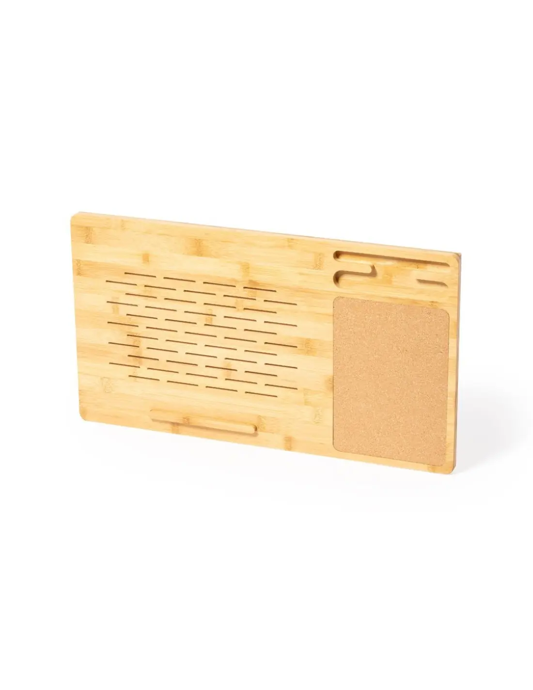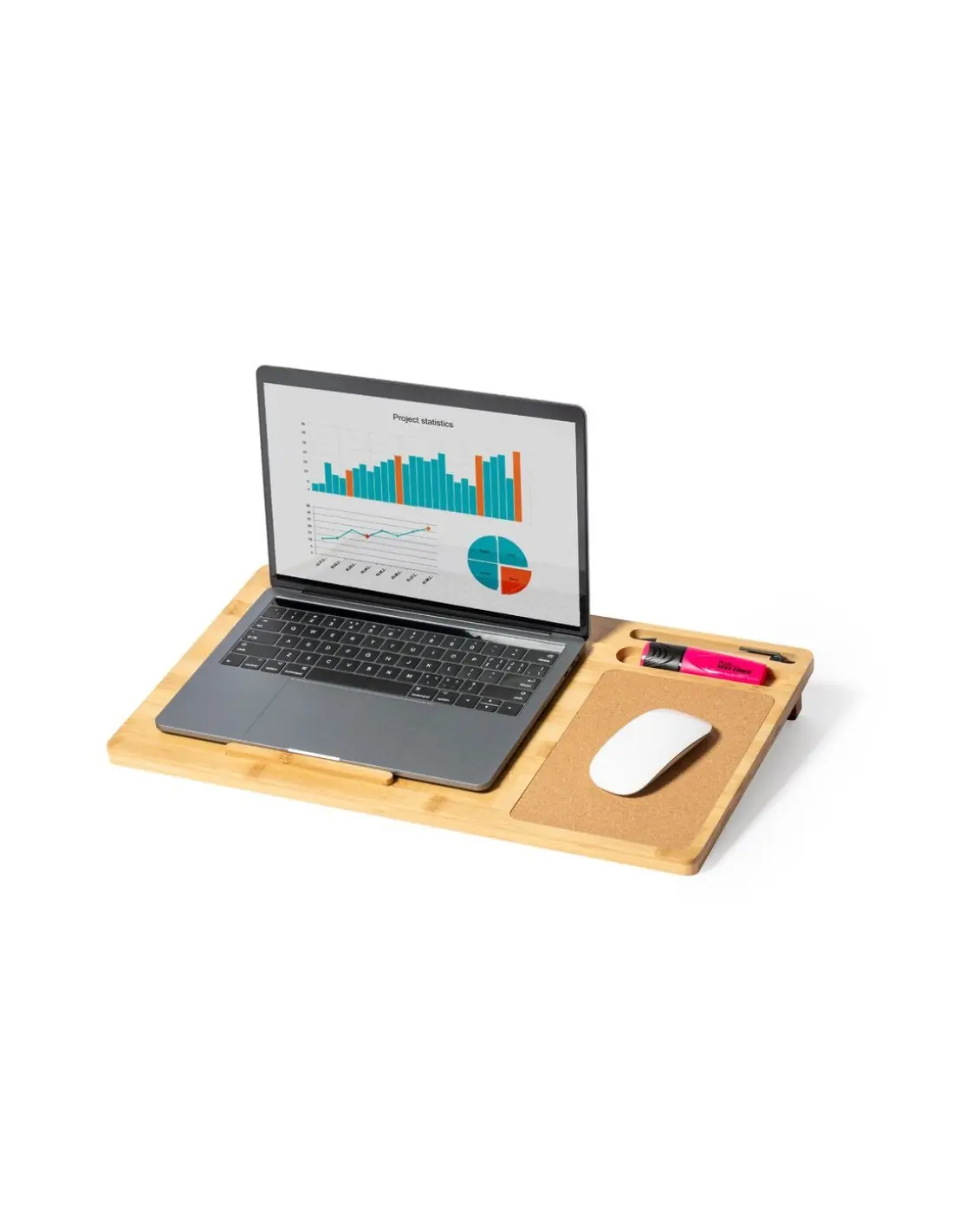 Alfombrilla organizador multifuncional de línea nature. Está fabricada en bambú y corcho natural, ayudando a la sostenibilidad del planeta. Incluye soportes para ordenador portátil, tablets y demás dispositivos móviles. Con alfombrilla para ratón integrada y presentada en caja individual de diseño kraft.