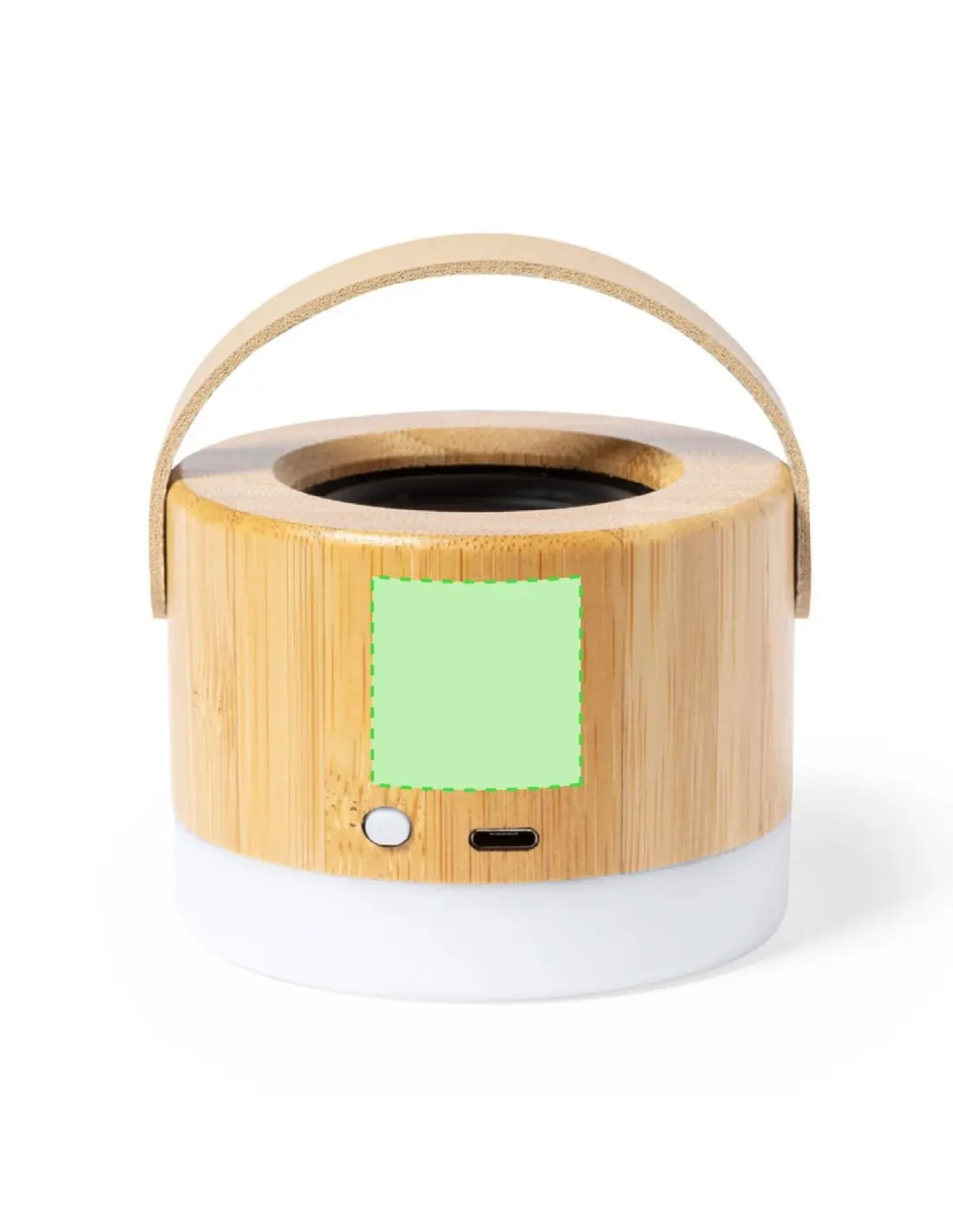 Altavoz Bluetooth de tamaño compacto, con 3W de potencia y luz LED. Fabricado en bambú y ABS, con cinta de transporte en polipiel. Batería de litio de 300mAh, con cable de carga Tipo C incluido. Presentado en caja individual de diseño kraft, con manual de instrucciones en español e inglés.