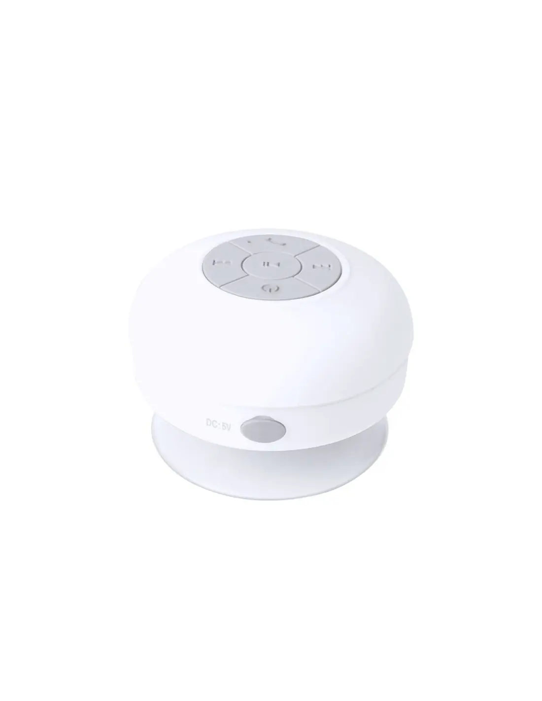 Altavoz con conexión Bluetooth 5.0 y 3W de potencia. Tacto de goma y resistente a salpicaduras de agua, con ventosa en silicona de alta adherencia en la base. Función manos libres, con cable de carga incluido, compatible con iOS y Android. Presentado en atractiva caja de diseño, con manual de instrucciones en español e inglés. Disponible en extensa gama de colores.