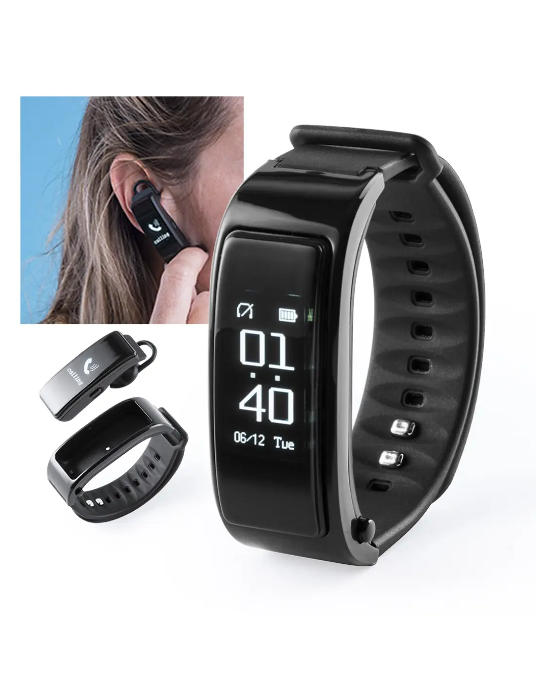 Reloj inteligente multifunción de diseño deportivo, con conexión Bluetooth y recargable mediante cable Micro USB -incluido-. Base extraíble con función auricular y manos libres. Su cuerpo en material TPU y su pantalla LCD integrada de 0,96 pulgadas lo convierten en el gadget perfecto para todo tipo de actividades deportivas, de ocio y para el día a día. Presentado en atractiva caja de diseño.
