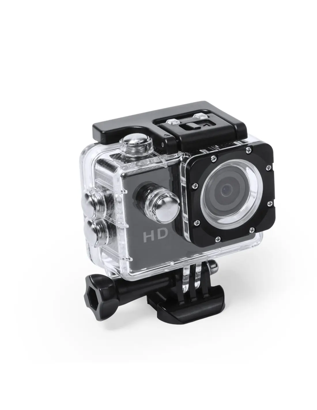 Cámara deportiva de alta calidad de captura de vídeo HD 720p, de diseño compacto y resistente, especialmente diseñada para uso intensivo. Incluye carcasa sumergible hasta 30m de profundidad y multitud de accesorios para ajuste en casco, manillar o cinturón, así como correas ajustables para cabeza y torso o un adaptador giratorio de 360º. La versatilidad y resistencia de esta cámara deportiva la convierten en el gadget perfecto para capturar, con una calidad excepcional, cualquier actividad deportiva. Con función cámara de fotos Full HD 1080p, ranura para tarjetas micro SD de hasta 32 GB de capacidad, sistema multilenguaje, y recargable mediante cable microUSB -incluido-. Presentada en atractiva caja de diseño.