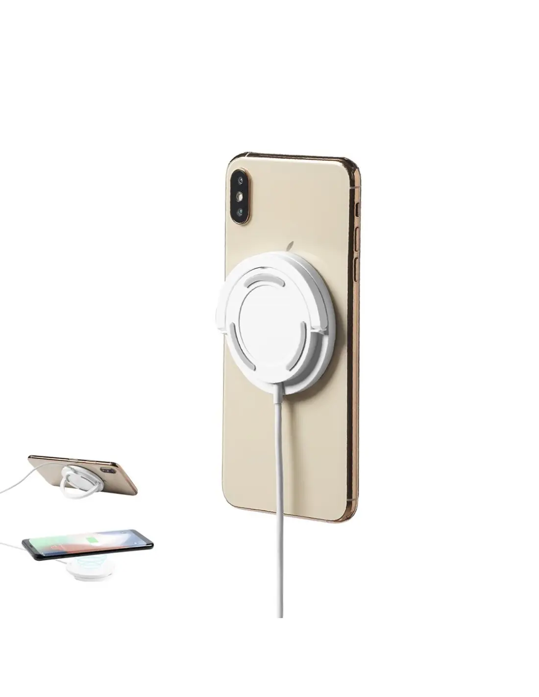 Cargador inalámbrico magnético de 10W con soporte integrado. Carcasa en ABS reciclado (RABS) y con certificación RCS, que garantiza el origen reciclado del mismo. Con cable USB de 1m. Incluye accesorio metálico con adhesivo 3M, de fijación extra fuerte y libre de residuo al despegarlo del dispositivo, permitiendo así el uso de la función magnética del cargador en cualquier dispositivo móvil. Compatible con terminales equipados con tecnología de carga inalámbrica. Amplia superficie de marcaje y presentado en atractiva caja de diseño eco. Disponible manual de instrucciones en español e inglés.