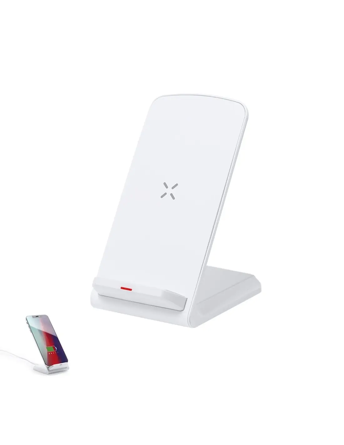Cargador inalámbrico 15W con función soporte para smartphone fabricado en RABS. Indicador de estado de carga y compatible con dispositivos equipados...