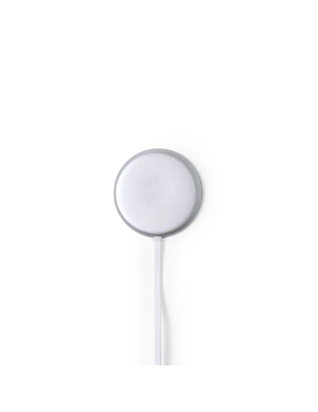Cargador inalámbrico magnético 10W. Carcasa fabricada en resistente aluminio de acabado plateado. Con indicador de estado de carga y cable USB de 1m con conector de aluminio. Incluye accesorio metálico con adhesivo 3M, de fijación extra fuerte y libre de residuo al despegarlo del dispositivo, permitiendo así el uso de la función magnética del cargador en cualquier dispositivo móvil. Compatible con terminales equipados con tecnología de carga inalámbrica. Amplia superficie de marcaje y presentado en atractiva caja de diseño. Disponible manual de instrucciones en español e inglés.