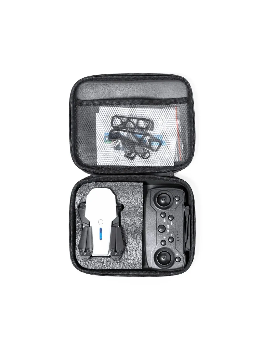 Dron en resistente material ABS. Con conectividad Wi-Fi, modo de grabación de vídeo y captura de fotos. Manejo del dron desde dispositivo móvil -APP compatible con iOS y Android- o bien mediante mando a distancia -incluido-. Con modo de vuelo automático -auto hover- que deja el dron suspendido en el aire. Batería de 600 mAh, recargable mediante cable Micro USB -incluido- y mando a distancia alimentado con pilas -3xAAA no incluidas-. Incluye estuche con recambios: 4 hélices, 4 protectores y destornillador, con cierre de cremallera e interior de espuma troquelado. Presentado en atractiva caja de diseño kraft, con manual de instrucciones en español e inglés .