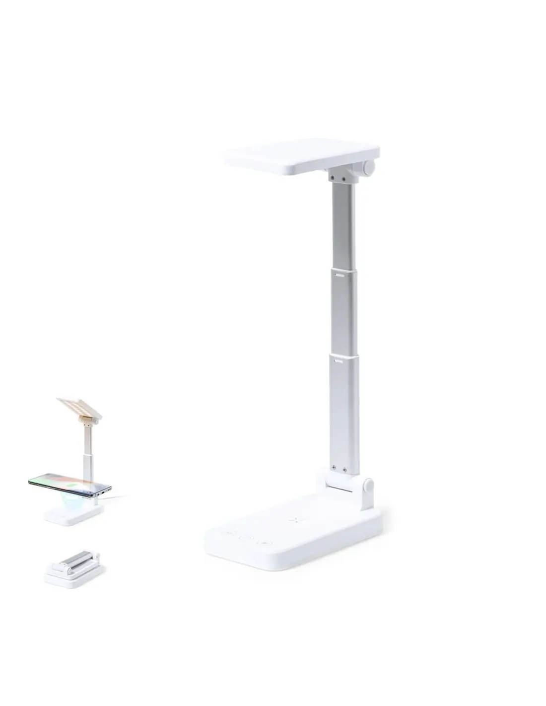 Lámpara multifunción plegable todo en uno, en combinación de aluminio con resistente ABS blanco. 28 LEDs y 3 posiciones de iluminación (cálida, fría y media), con intensidad de luz regulable y ajustable en altura. Cargador inalámbrico 10W integrado y batería de 3.000 mAh, con entrada Tipo C y salida USB. Compatible con dispositivos móviles de carga inalámbrica, incluye cable cargador Tipo C y viene presentada en una atractiva caja de diseño. Las capacidades mostradas en todas nuestras baterías auxiliares externas son reales, incorporando todas ellas baterías de grado A y no recicladas, con una vida útil de al menos 500 ciclos de carga y según normativa CE. Además, están fabricadas conforme a los estándares RoHS y en cumplimiento con los siguientes requisitos de seguridad: Sistema de protección contra sobrecarga del power bank. Sistema de protección contra descarga completa que proporciona una mayor durabilidad del power bank. Sistema de bloqueo para evitar cortocircuitos. Sistema de transferencia de carga constante, acorde con la capacidad del dispositivo de destino.