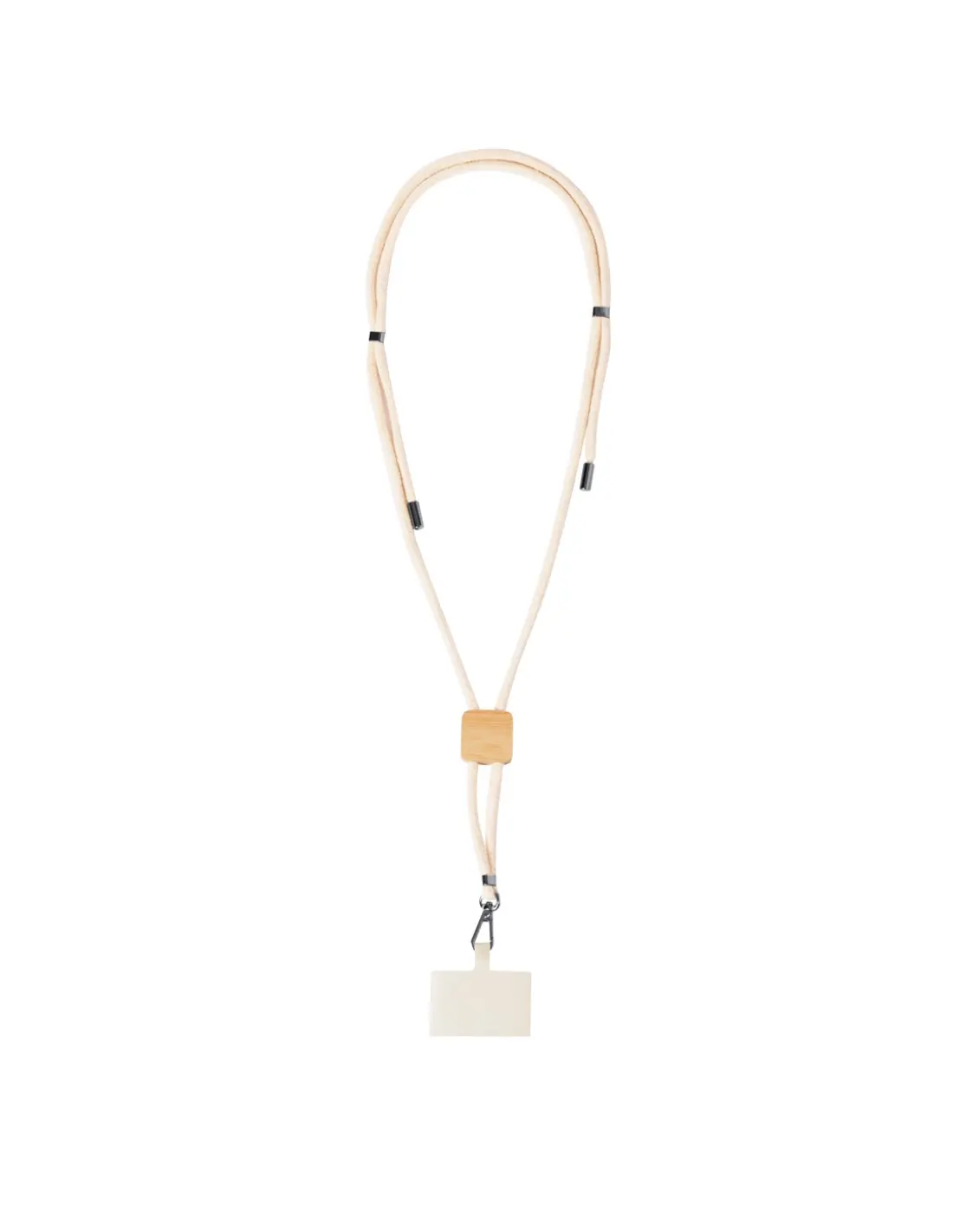 Original lanyard con accesorio para smartphone. Fabricado en resistente algodón, con accesorio de bambú para marcaje. Accesorio de transporte para...
