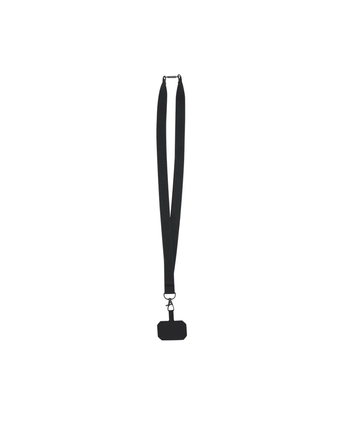 Original lanyard soporte en suave poliéster, adaptable por el accesorio de transporte para situar entre la funda y el smartphone. Cinta de transporte a juego, mosquetón metálico giratorio en color negro y dispone de accesorio de seguridad en el cuello.