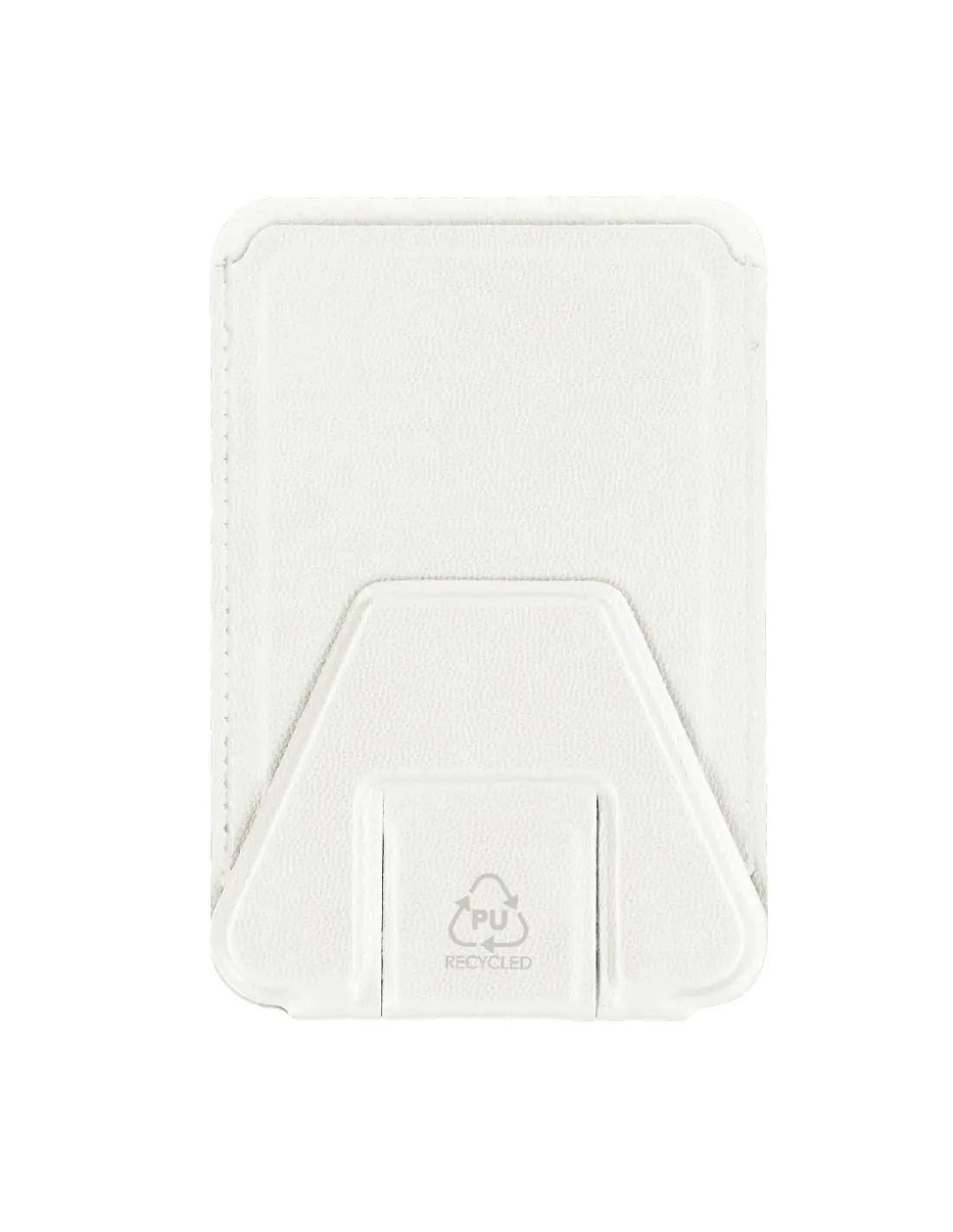Funda tarjetero en PU Reciclado. Con soporte multifuncional que permite diversas posiciones. Con sistema de fijación adhesiva. Incluye distintivo PU...
