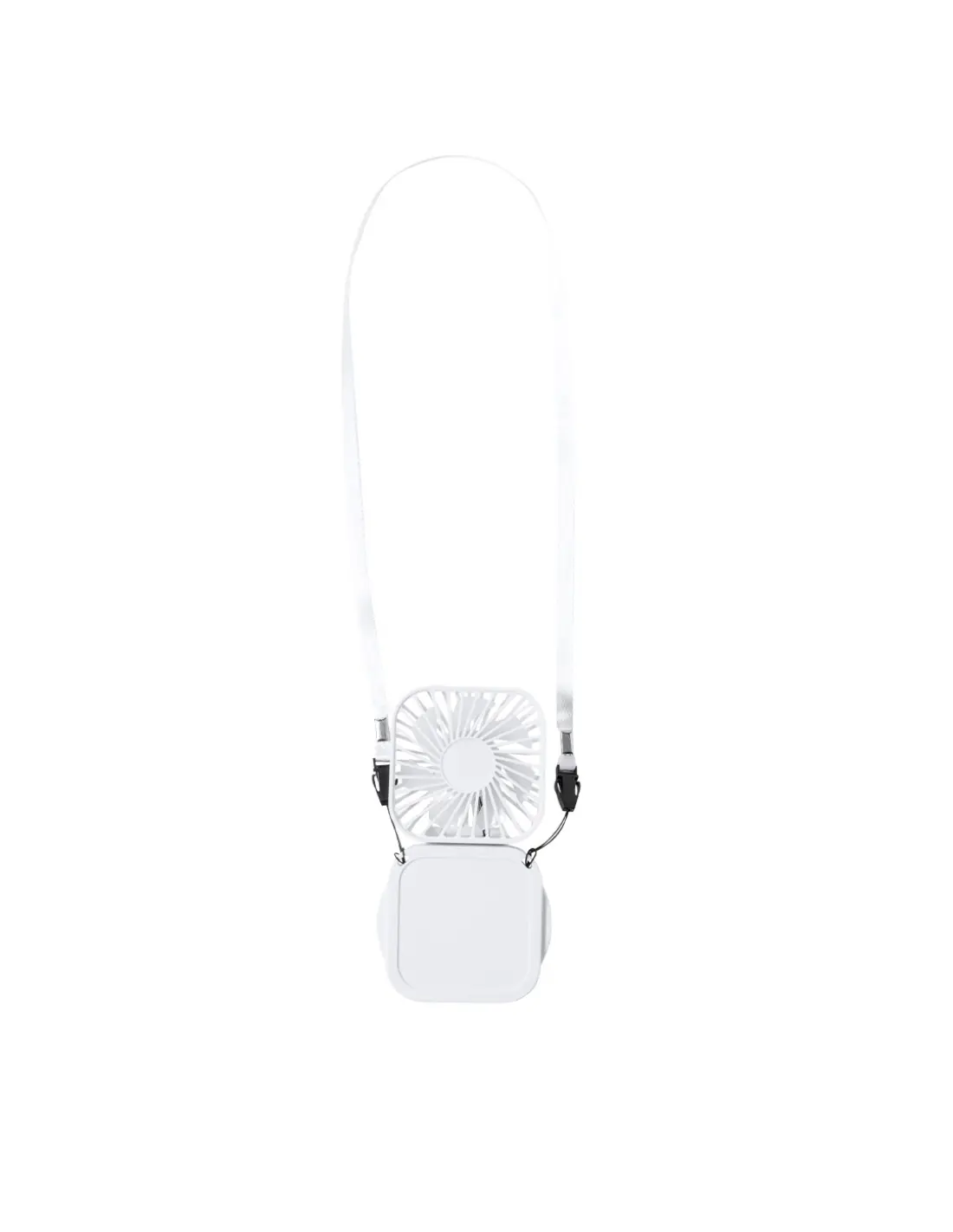 Ventilador portátil fabricado en resistente ABS. Este práctico dispositivo cuenta con tres velocidades, con un lanyard para un uso cómodo. Se alimenta mediante una batería de 400 mAh, compatible con conexiones USB , y presenta indicadores de luz para conocer el nivel de carga de la batería. Presentado individualmente en caja de diseño kraft.