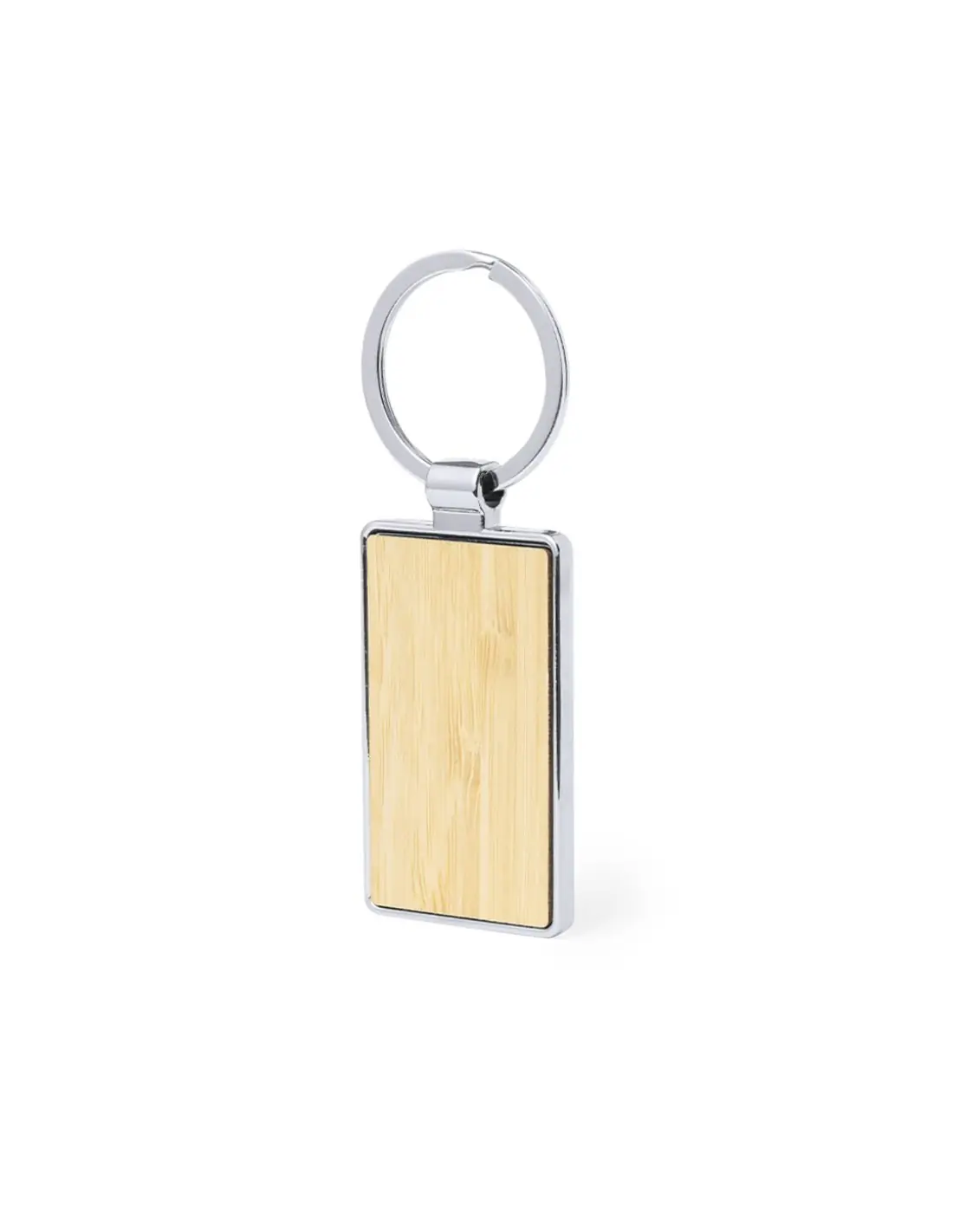 Elegante llavero fabricado en bambú y metal cromado. Con amplia superficie de marcaje y disponible en formato rectangular o redondo. Especialmente...