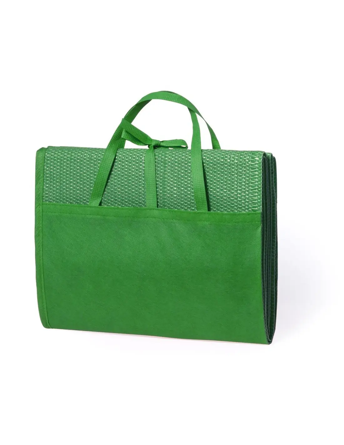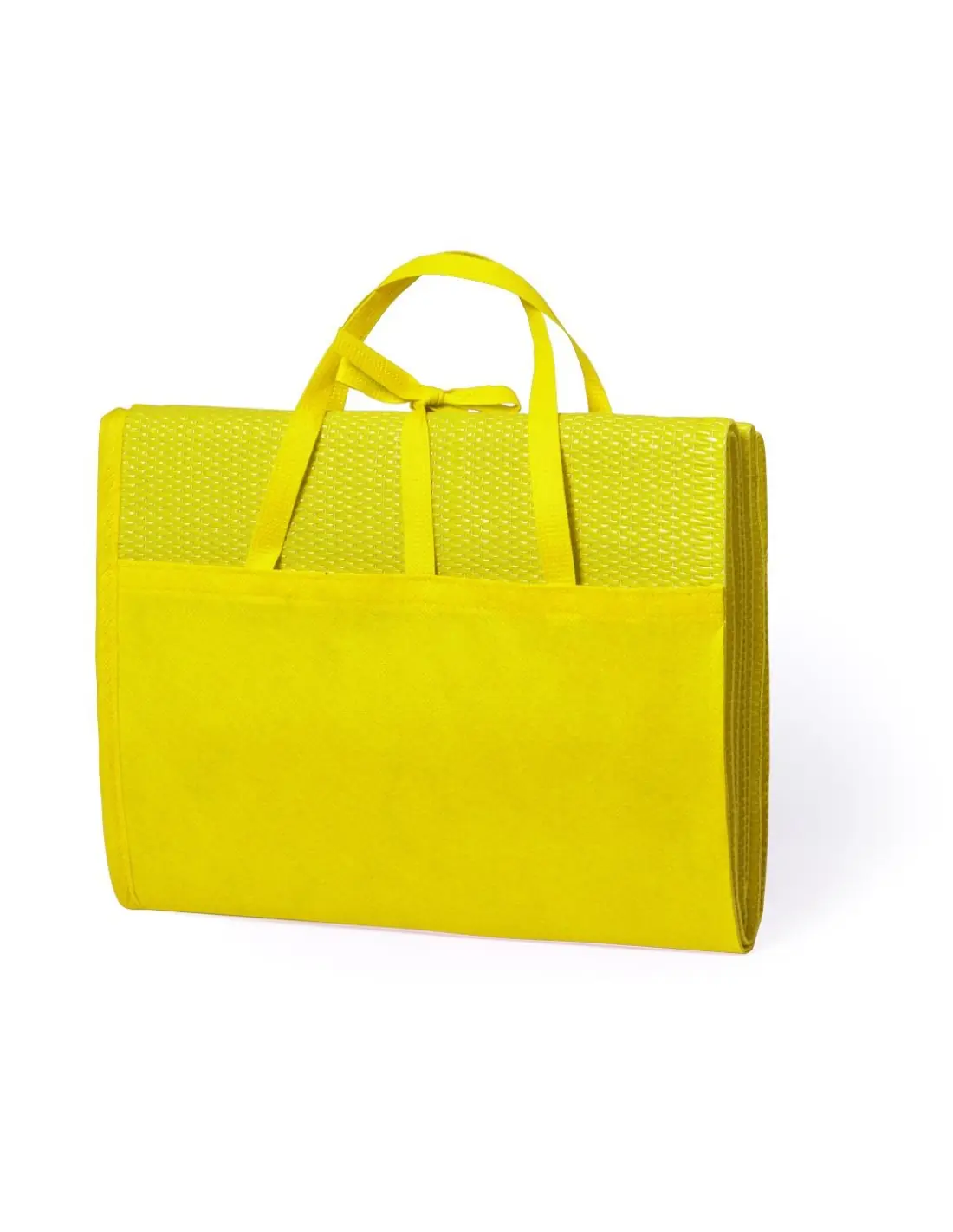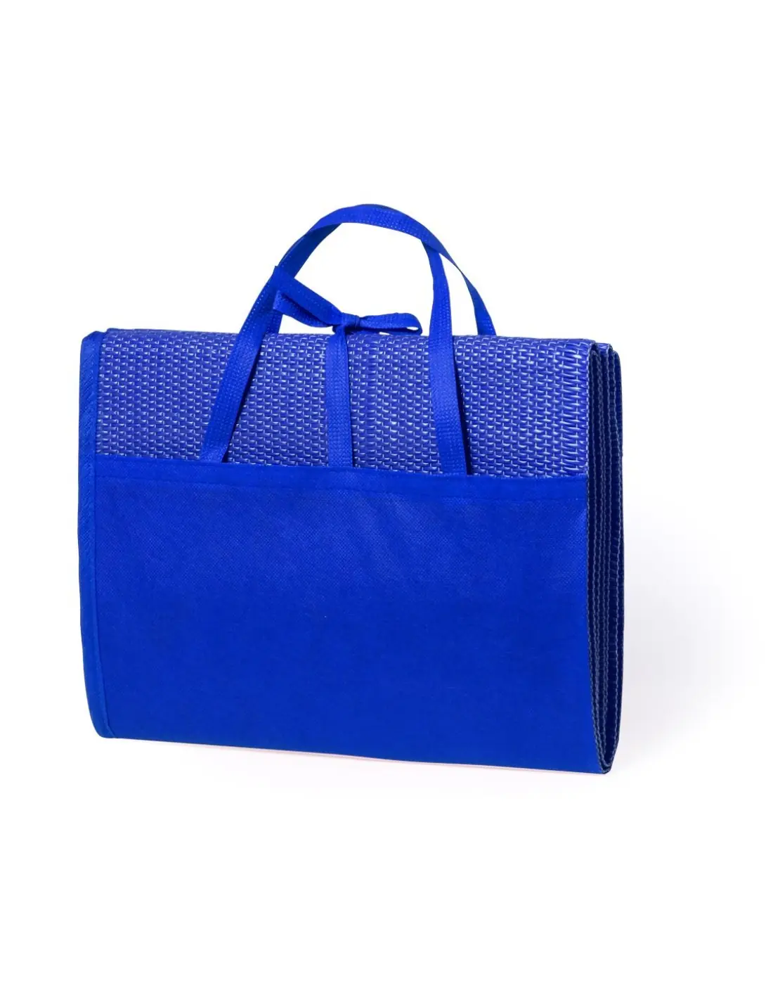 Esterilla plegable de 180x60cm en PP trenzado de alta resistencia. En variada gama de vivos colores brillantes, con cinta de cierre y asas de transporte.