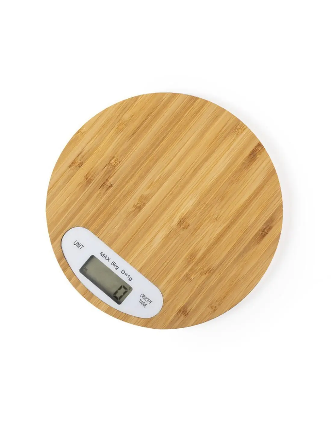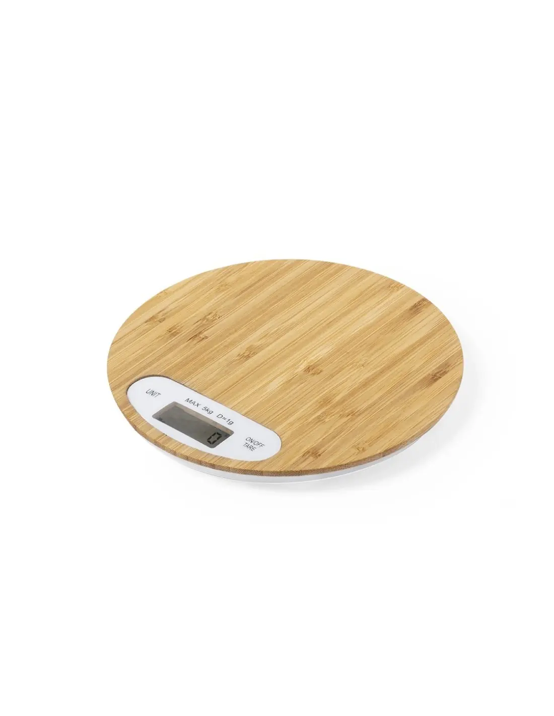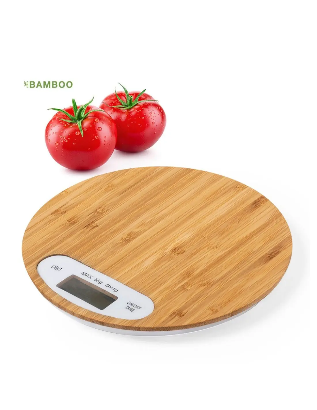 Báscula de cocina de línea nature en bambú pulido. Display digital, con funciones de apagado automático, tara y selección de unidad de pesaje....