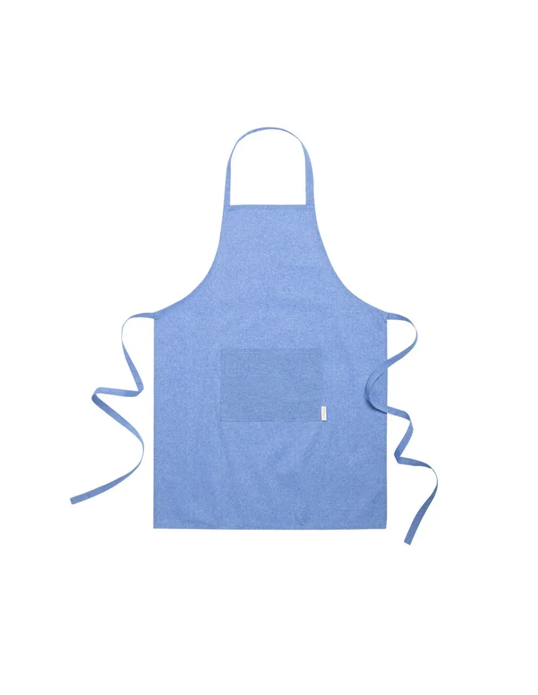 Delantal de línea nature, elaborado en algodón reciclado. Con bolsillo frontal y cintas de ajuste, de corte por debajo de la rodilla. Disponible en variada gama de colores, con distintivo algodón reciclado en etiqueta.