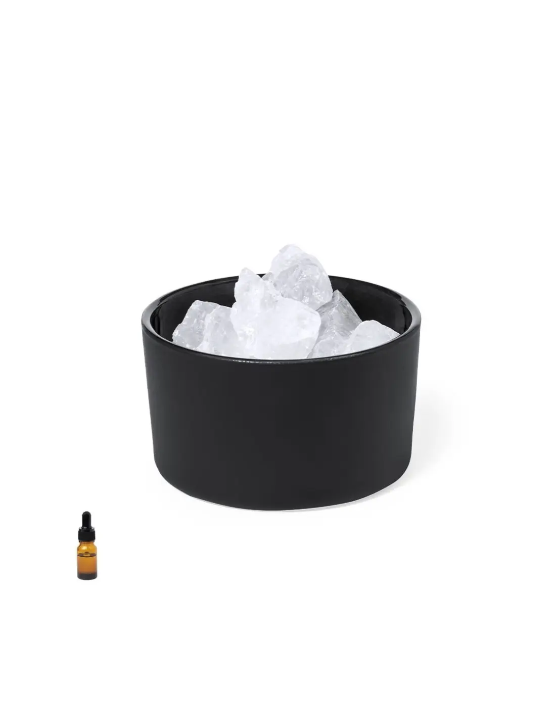 Difusor aromático natural. Utilizando la inducción natural permite la difusión del aroma, aplicando unas gotas sobre las piedras de cristal. Incluye 10 piedras de cristal, un cuenco y 10 ml de aceite aromático con fragancia a lavanda. Presentado en caja de diseño kraft.