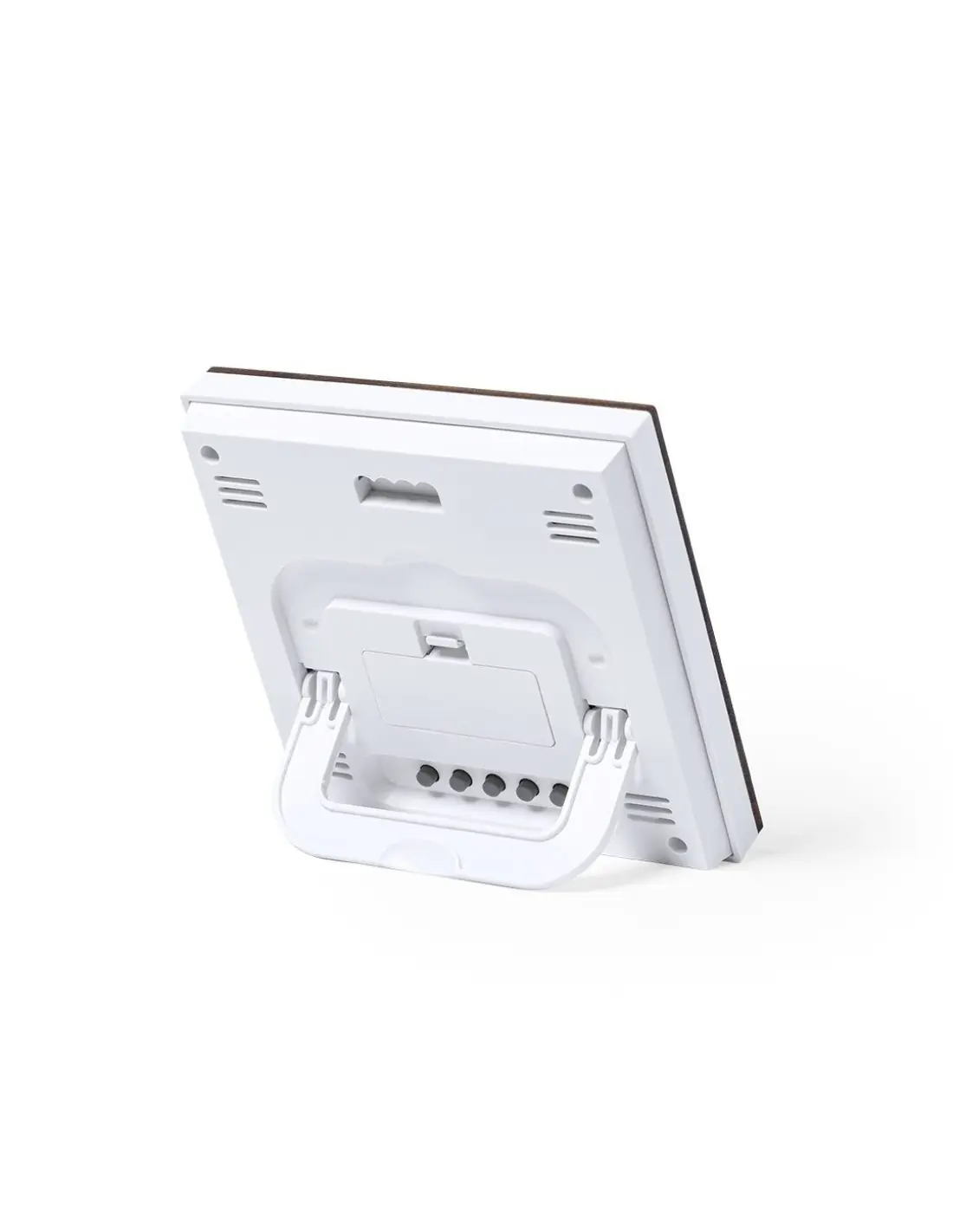 Estación meteorológica de línea nature con frontal en bambú. Con sensor de temperatura y humedad. Función calendario y alarma. Soporte trasero abatible y ajustable, con posibilidad de instalación en la pared. Alimentación a pilas (2xAAA no incluidas) y presentado en atractiva caja de diseño eco. Disponible manual de instrucciones en español e inglés.