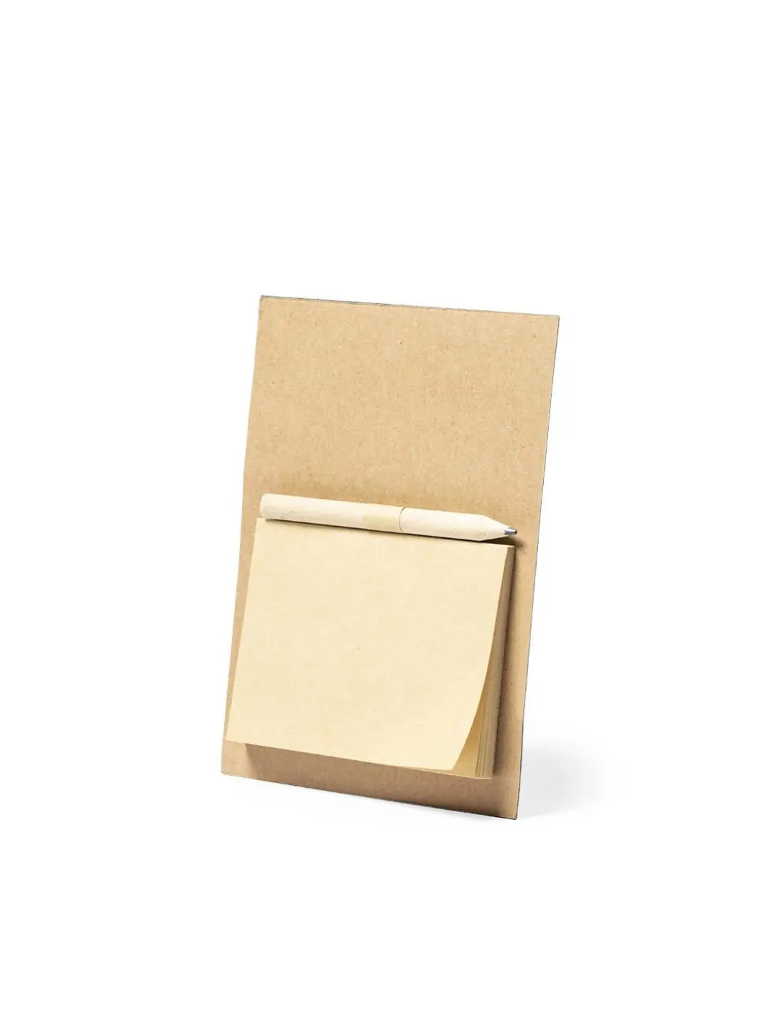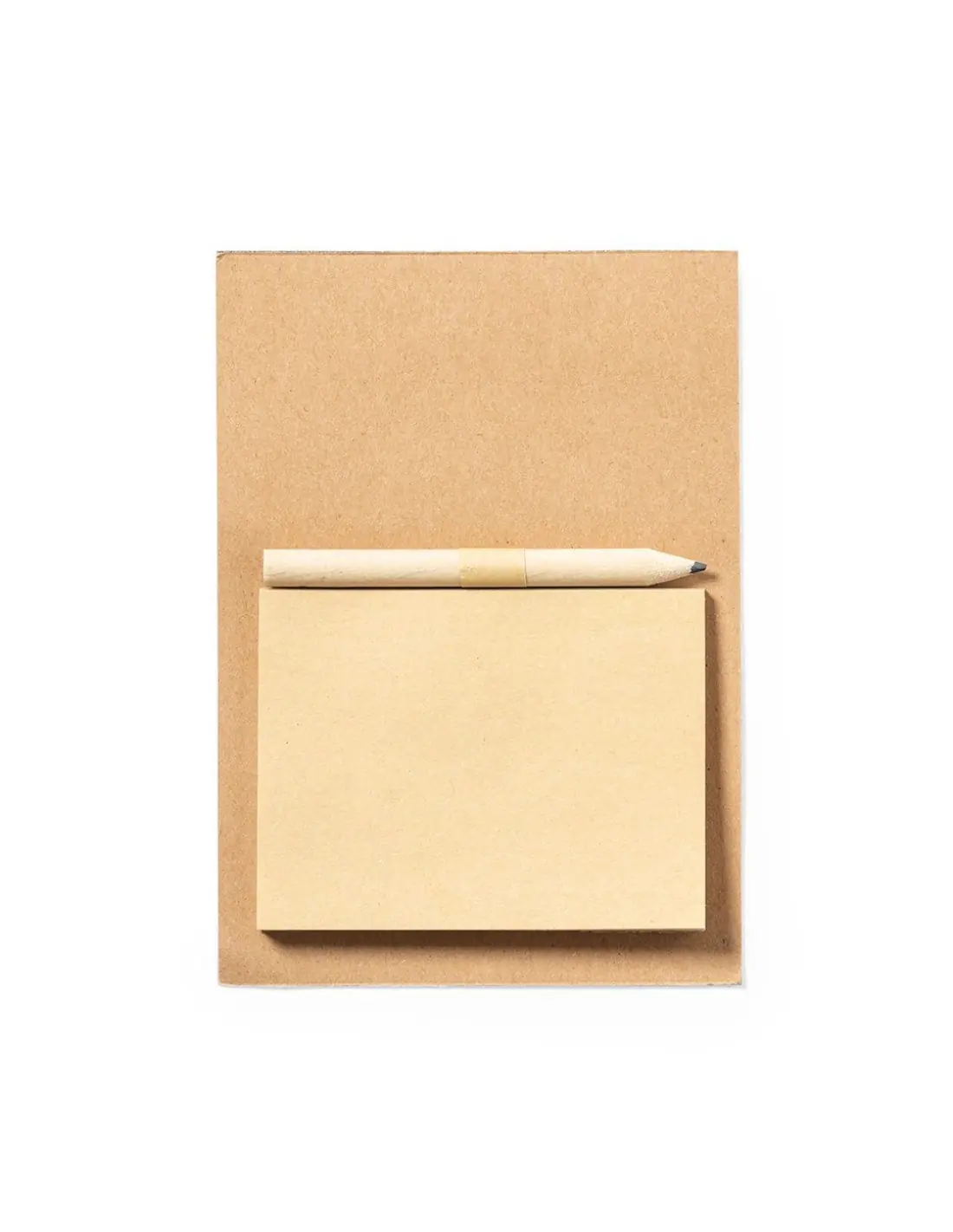 Imán para notas de línea nature. Fabricado en resistente papel reciclado, incluye minilápiz de madera y bloc de notas con 40 hojas lisas en color crema.
