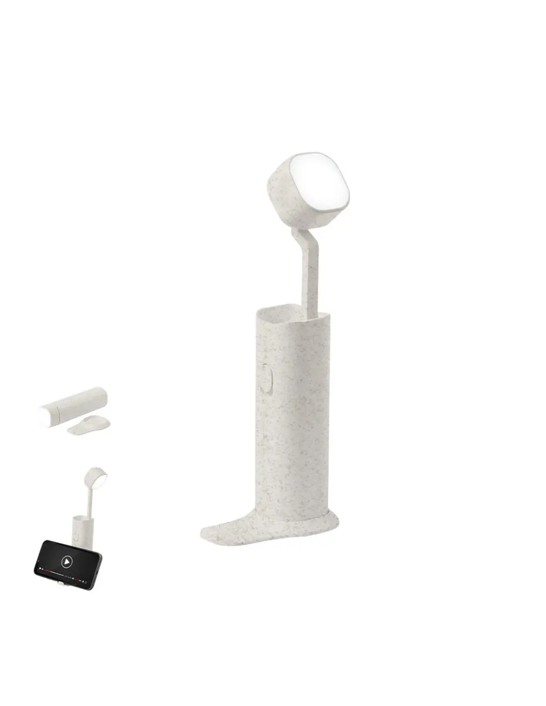 Lámpara multifunción fabricada en caña de trigo. Incluye 12 LEDs de intensidad regulable, es plegable y ajustable en altura. Incluye soporte para dispositivos móviles y tiene base antideslizante, con cable cargador Micro USB incluido. Disponible manual de instrucciones en español e inglés y presentada en caja de diseño kraft.La caña de trigo fomenta la utilización de materias primas naturales, reduciendo así las emisiones contaminantes.Fabricada conforme a los estándares RoHS y en cumplimiento con los siguientes requisitos de seguridad:Sistema de protección contra sobrecalentamiento.Sistema de protección contra sobrecarga.Sistema de bloqueo para evitar cortocircuitos.