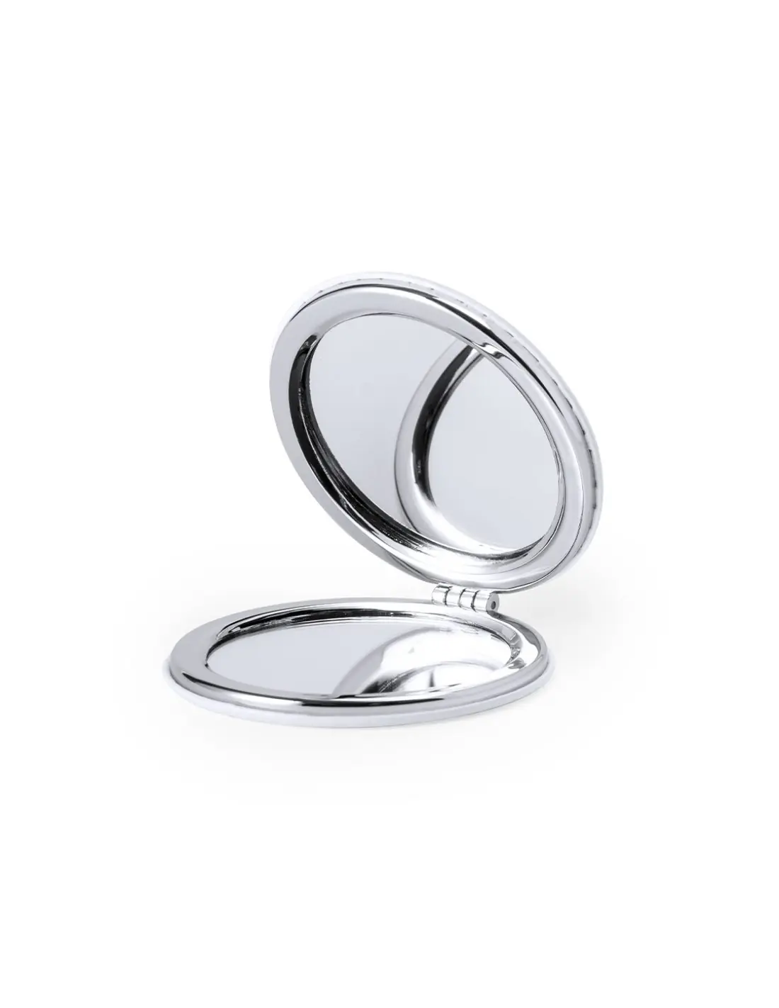 Espejo plegable en elegante acabado de polipiel blanca. Con dos espejos interiores: 1X y aumento 2X.