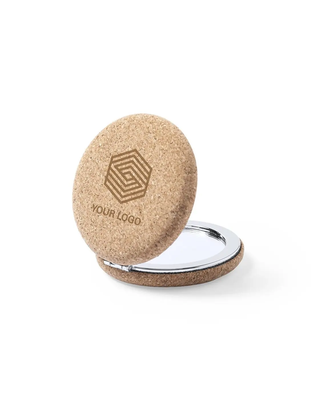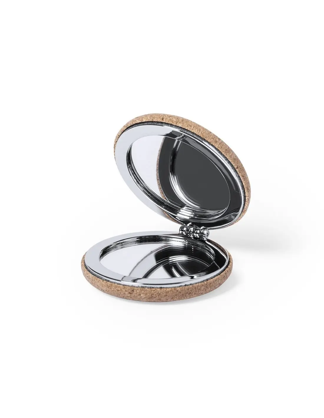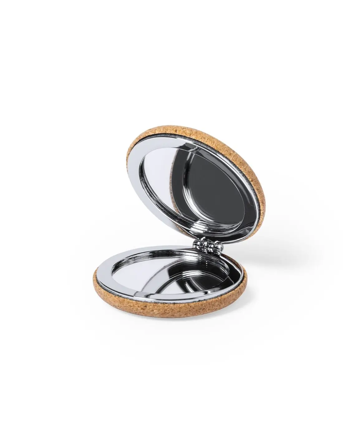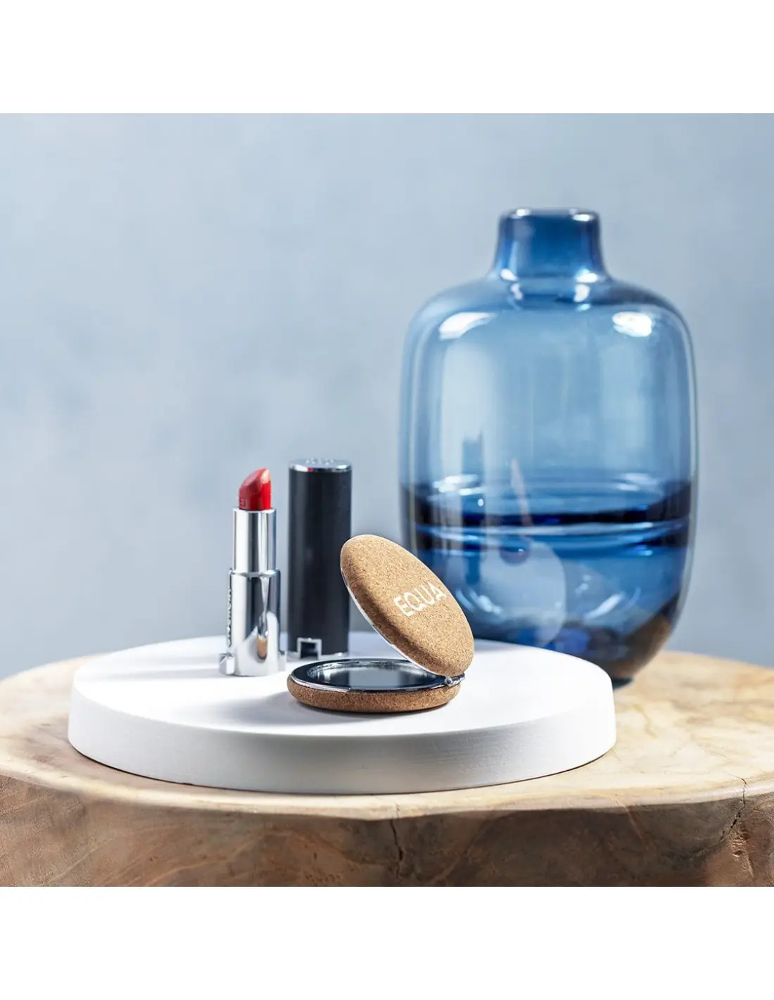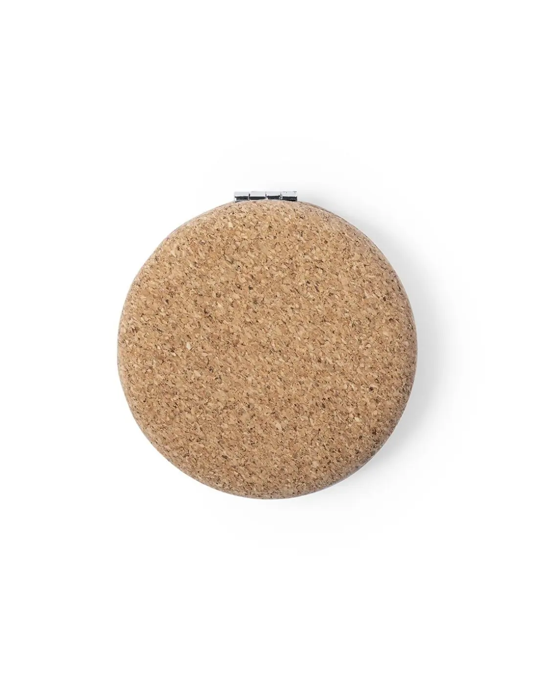 Espejo plegable de línea nature. En combinación de materiales corcho natural y metal cromado. Dos espejos interiores: 1X / 2X. Presentado en atractiva caja individual de diseño eco.