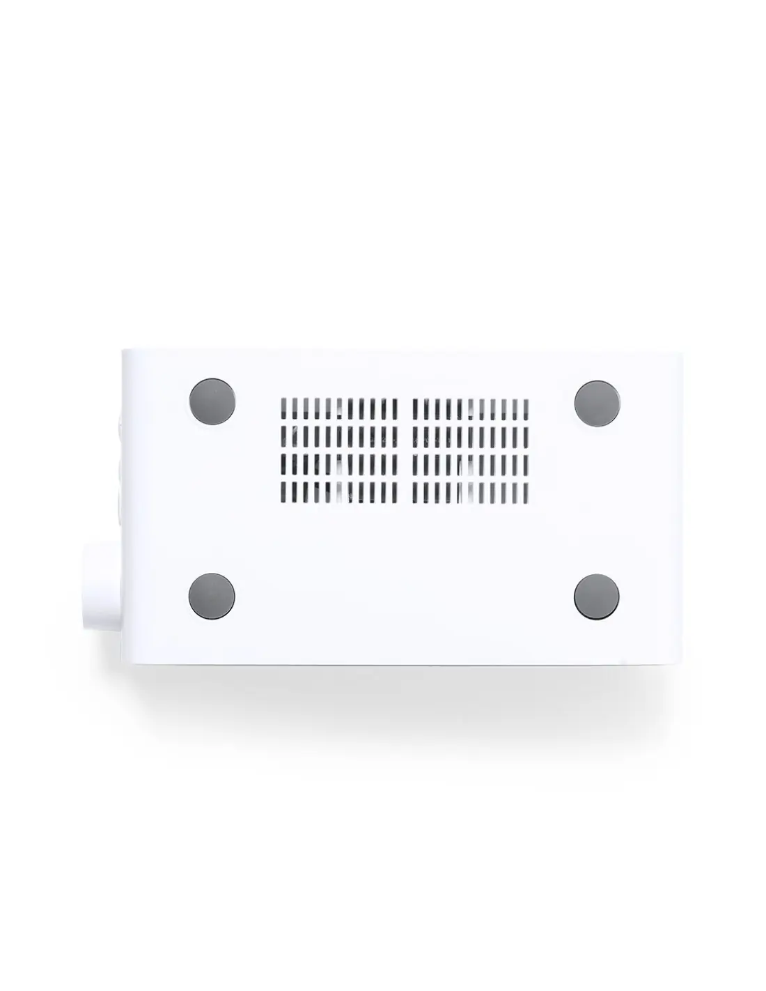 Reloj multifunción de elegante diseño en color blanco con cargador inalámbrico de 10W integrado y lámpara led integrada. Con función fecha/hora, alarma y lámpara de 36 ledes con intensidad de luz regulable. Conexión USB, con cable Tipo C incluido de 100 cm y alimentación auxiliar a pilas de botón (incluida). Compatible con dispositivos equipados con tecnología de carga inalámbrica. Presentado en atractiva caja de diseño.En cumplimiento con los requisitos de seguridad: Sistema de protección contra sobrecalentamiento. Sistema de protección contra sobrecarga.