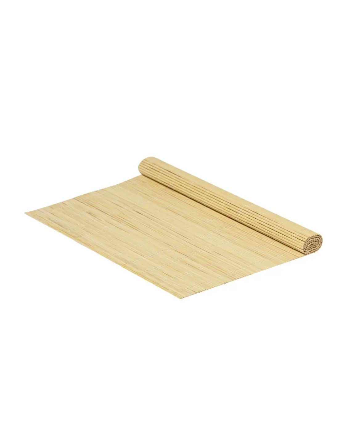 Salvamantel plegable de diseño rectangular en madera de bambú de variados colores. Con refuerzos en resistente hilo.