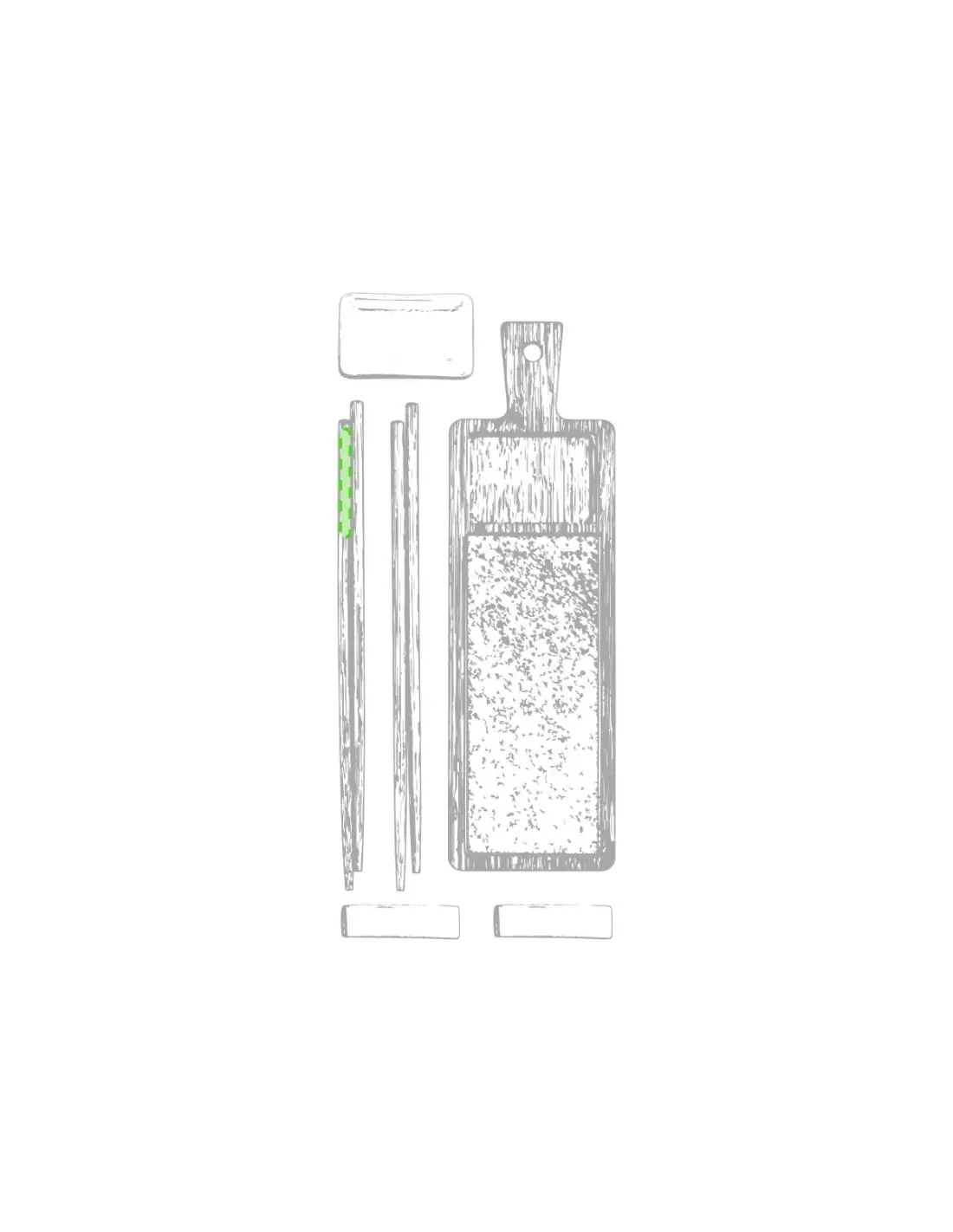 Set de sushi premium de 6 piezas, fabricado en bambú y pizarra natural, e ideal para servicio o presentación. Incluye tabla de presentación de bambú en combinación con pizarra natural , 2 juegos de palillos en bambú natural con soportes de cerámica y un cuenco de cerámica. Presentado en caja individual de diseño eco en cartón kraft.