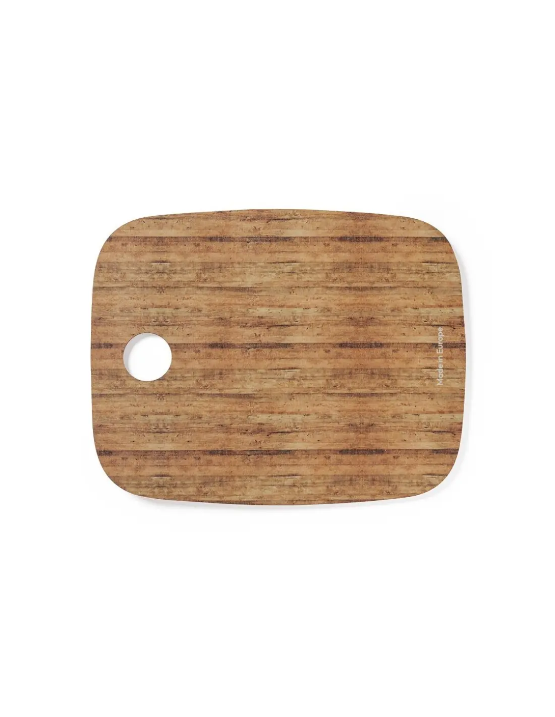 Tabla de corte y presentación fabricada en madera natural, con agujero para colgar. Amplia superficie de marcaje y distintivo Made In Europe.