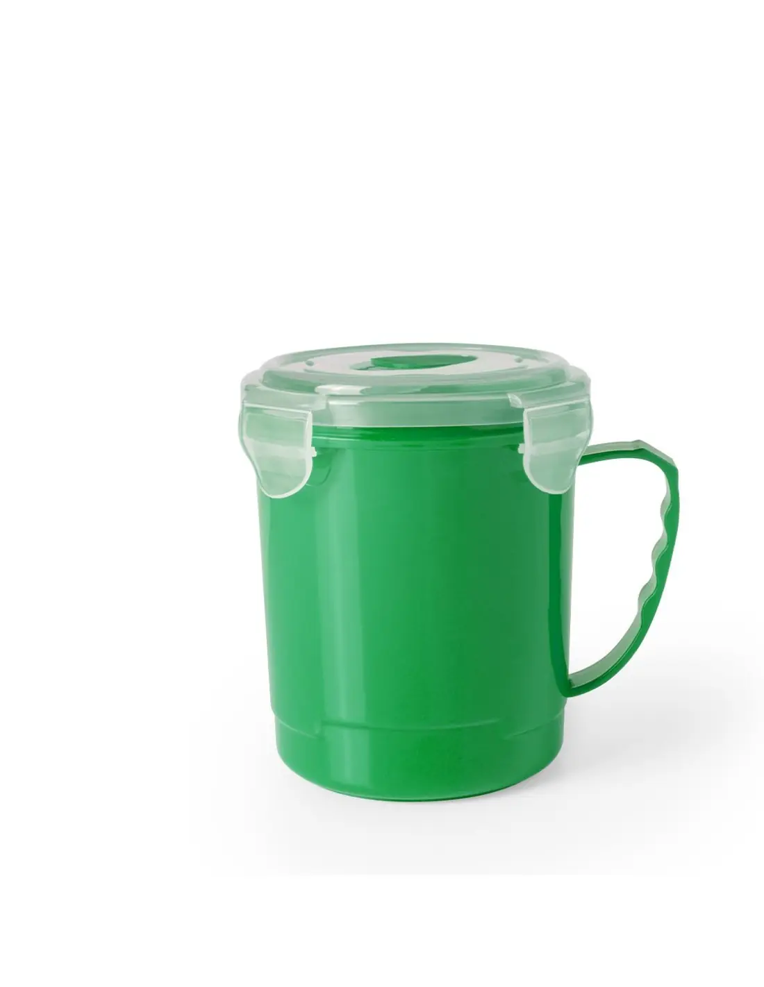 Tarro de 710ml de capacidad en resistente PP especialmente diseñado para líquidos. En variada gama en vivos colores, tapadera translúcida con 4 cierres, anilla de seguridad interior y dosificador integrado. Asa ergonómica a juego