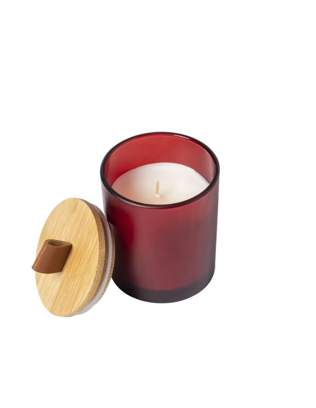 Vela aromática en tarrito de cristal con tapa de bambú. Disponible en cristal de variados colores y con distintos aromas según el color:Blanco aroma vainilla. Negro aroma sándalo. Rojo aroma canela.Verde aroma jazmín. Presentada en caja individual de diseño kraft.
